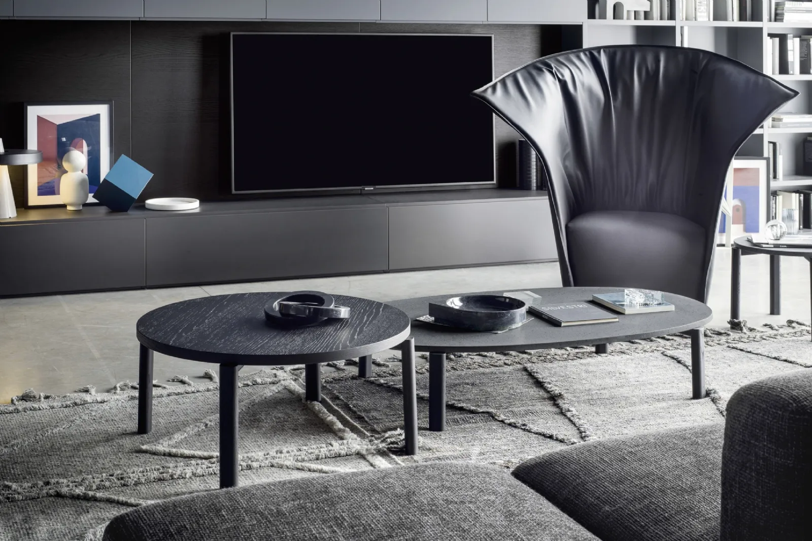 - Tavolino ovale e rotondo Fly Novamobili: un complemento elegante e sofisticato, realizzato in materiali di qualità, con linee decise tipiche dell'azienda, perfetto per arredare spazi moderni.