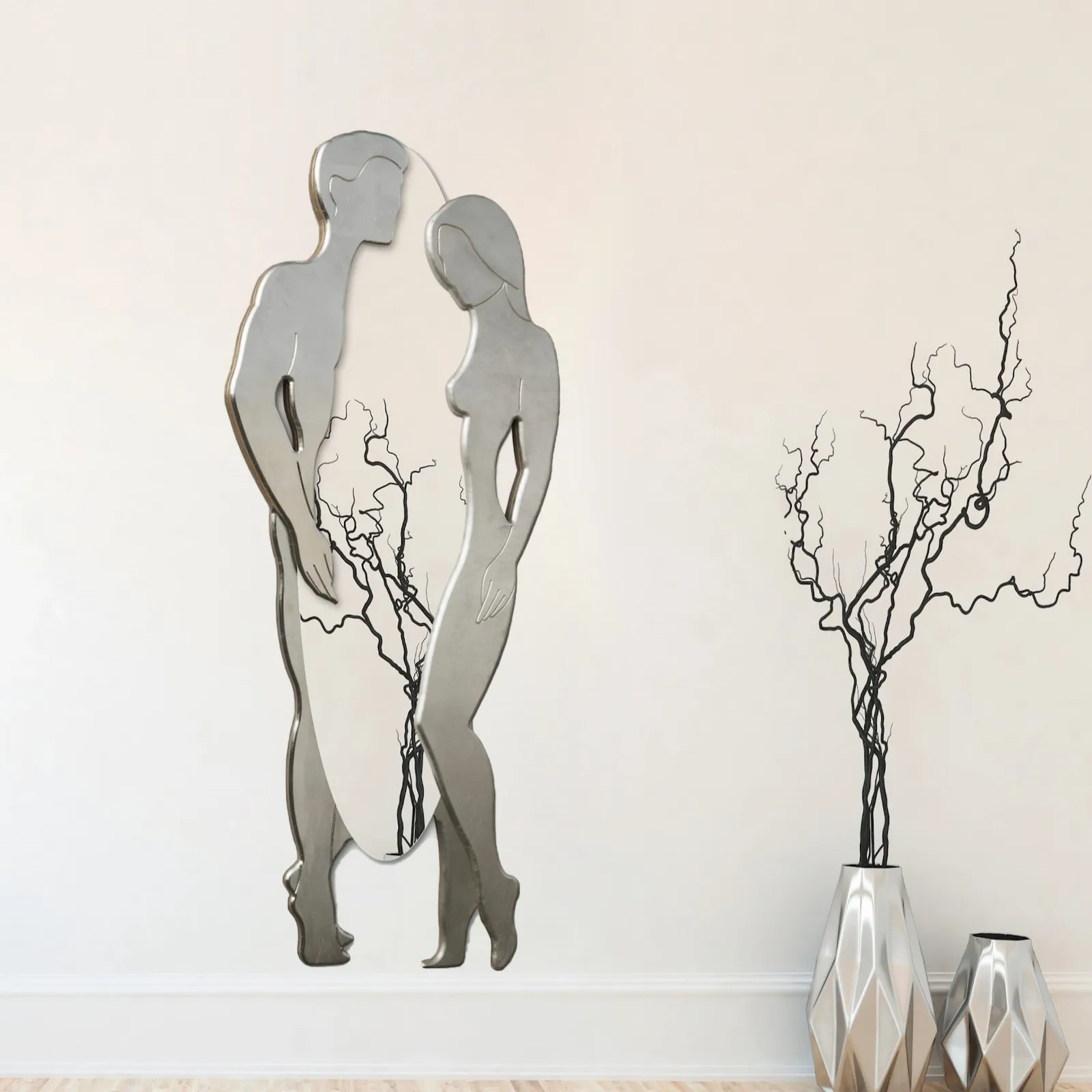 Specchio Adamo ed Eva di Pintdecor: realizzato in materiali di qualità e contraddistinto dalle forme decise tipiche del marchio, è un complemento elegante e raffinato ideale per spazi design. Ideali per dare vita a degli accostamenti unici insieme al resto dell'arredo, i Complementi design del marchio sono soluzioni tra le più originali in commercio per completare il tuo living, la zona pranzo, la zona notte e gli altri locali di casa. Se vuoi scoprire una grande varietà di specchi di qualità eccellente, sia per interni che per esterni, contatta i nostri consulenti d'arredo. Nel nostro portale di Arredamento e Accessori Casa in vetro ti attende una ricca gamma di specchi delle migliori marche.
