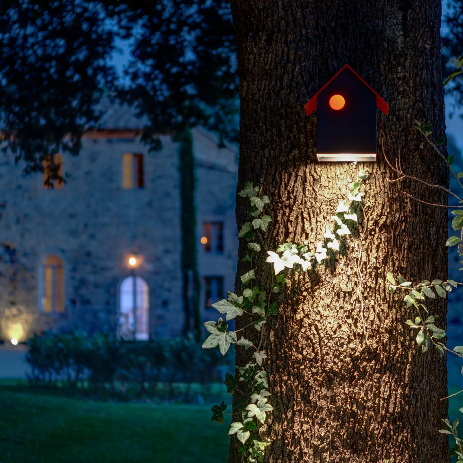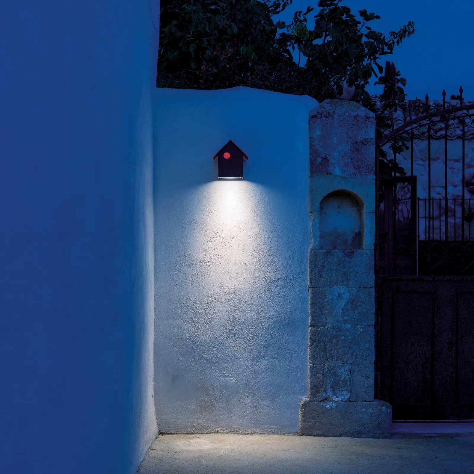 Il brand Davide Groppi, specialista nel campo illuminotecnico, propone una vasta scelta di apparecchi illuminanti da esterni dalle forme decise, come il modello in foto.