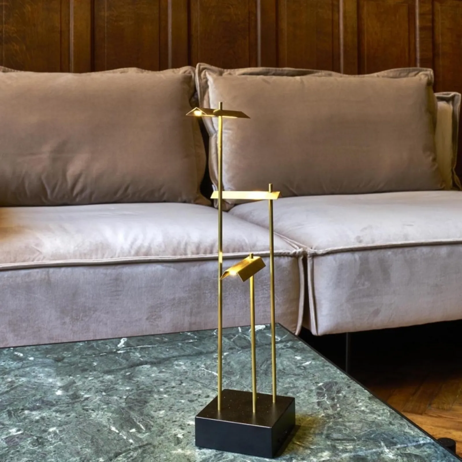 - Un vasto assortimento di lampade da tavolo di materiali resistenti, come questo modello in metallo