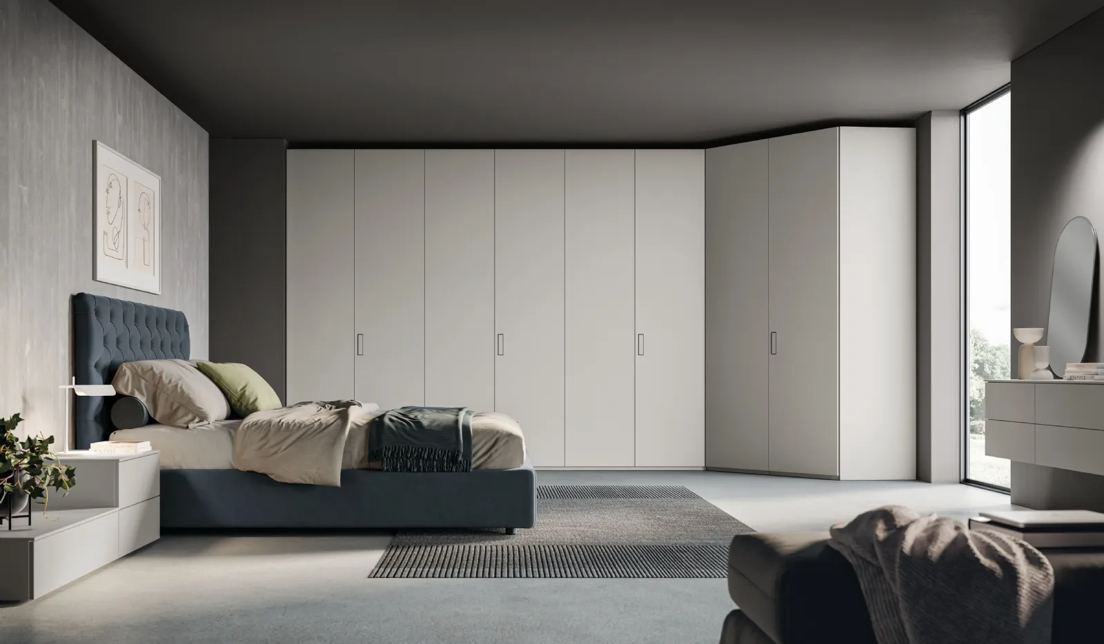 Scegli il tuo nuovo armadio valutando con attenzione il numero di ante, le dimensioni, le conformazioni e gli accostamenti cromatici. Nel nostro portale di mobili e complementi per la camera da letto ti attendono diverse soluzioni con ante battenti, ideali per completare spazi moderni di ogni genere. Armadio Ardecò Axel Grigio Londra di Spagnol Mobili: contattaci per informazioni e preventivi. Poliedrici e durevoli, spaziosi e realizzabili su misura: sono gli Armadi ad angolo della marca, specialista nel settore dell’Arredamento Casa. Il modello mostrato in foto è realizzato in laccato opaco e saprà garantirti tanto spazio per indumenti e quant'altro e un'ottima resa estetica.