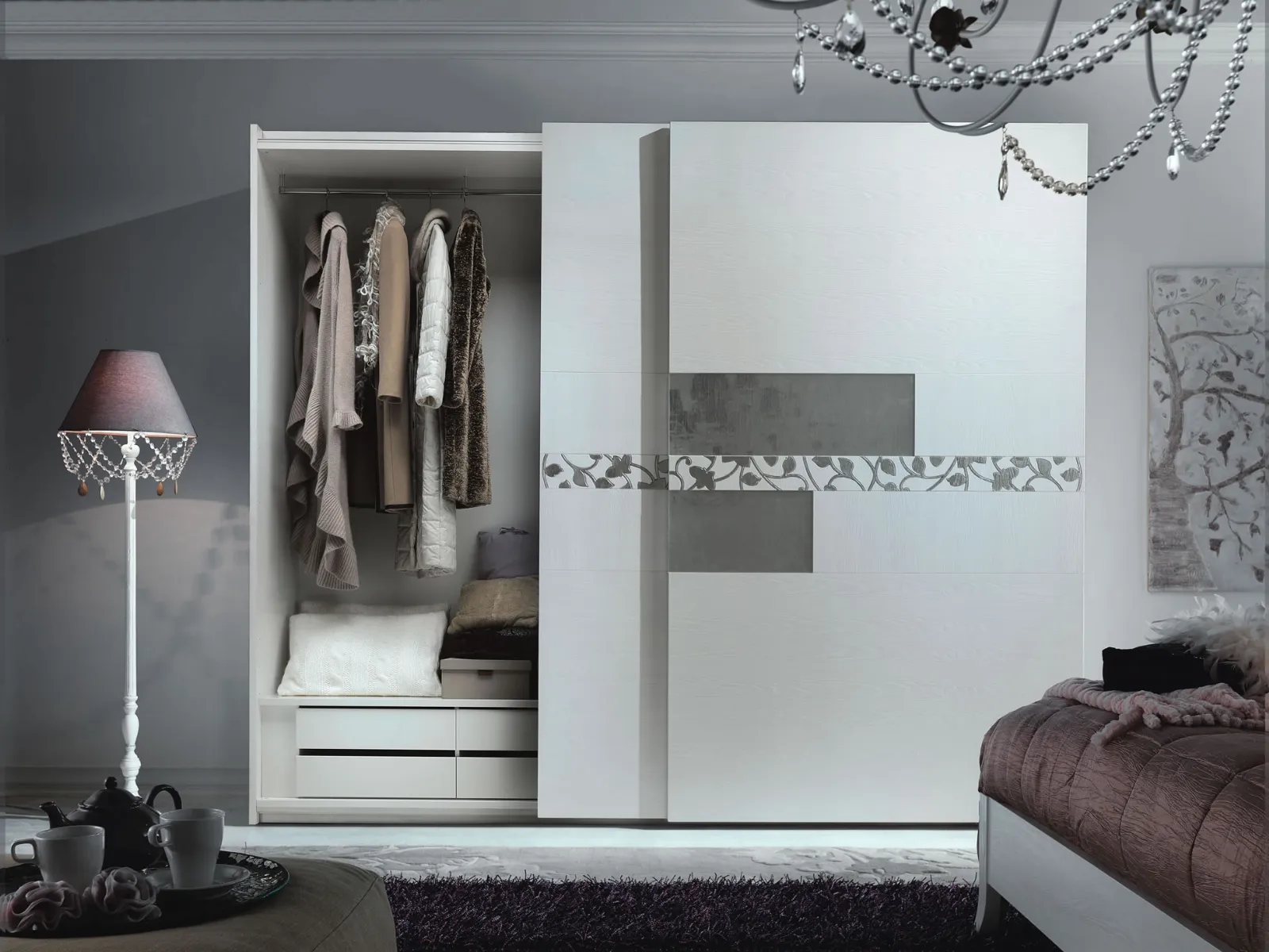 Armadio Attiva 1 con ante scorrevoli in laccato opaco. Il modello di Passione Italiana è perfetto per arredare una camera da letto con un tocco di design.