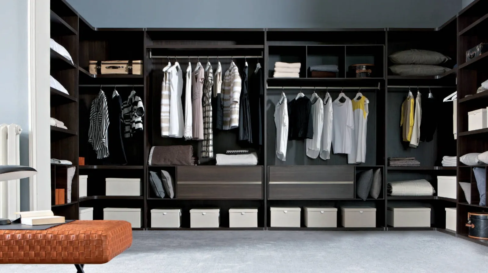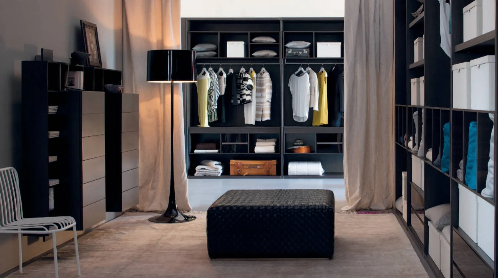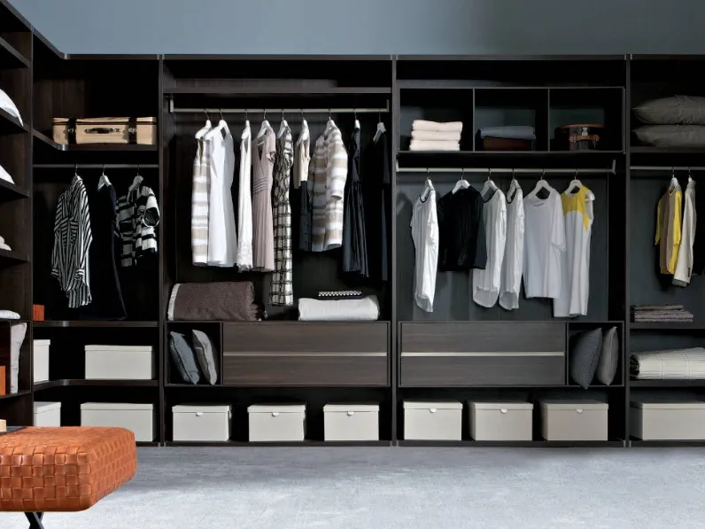 Habitat di Estel è una cabina armadio di qualità, dotata di ante battenti per garantire una perfetta funzionalità e una ricca scelta di soluzioni per ogni necessità.