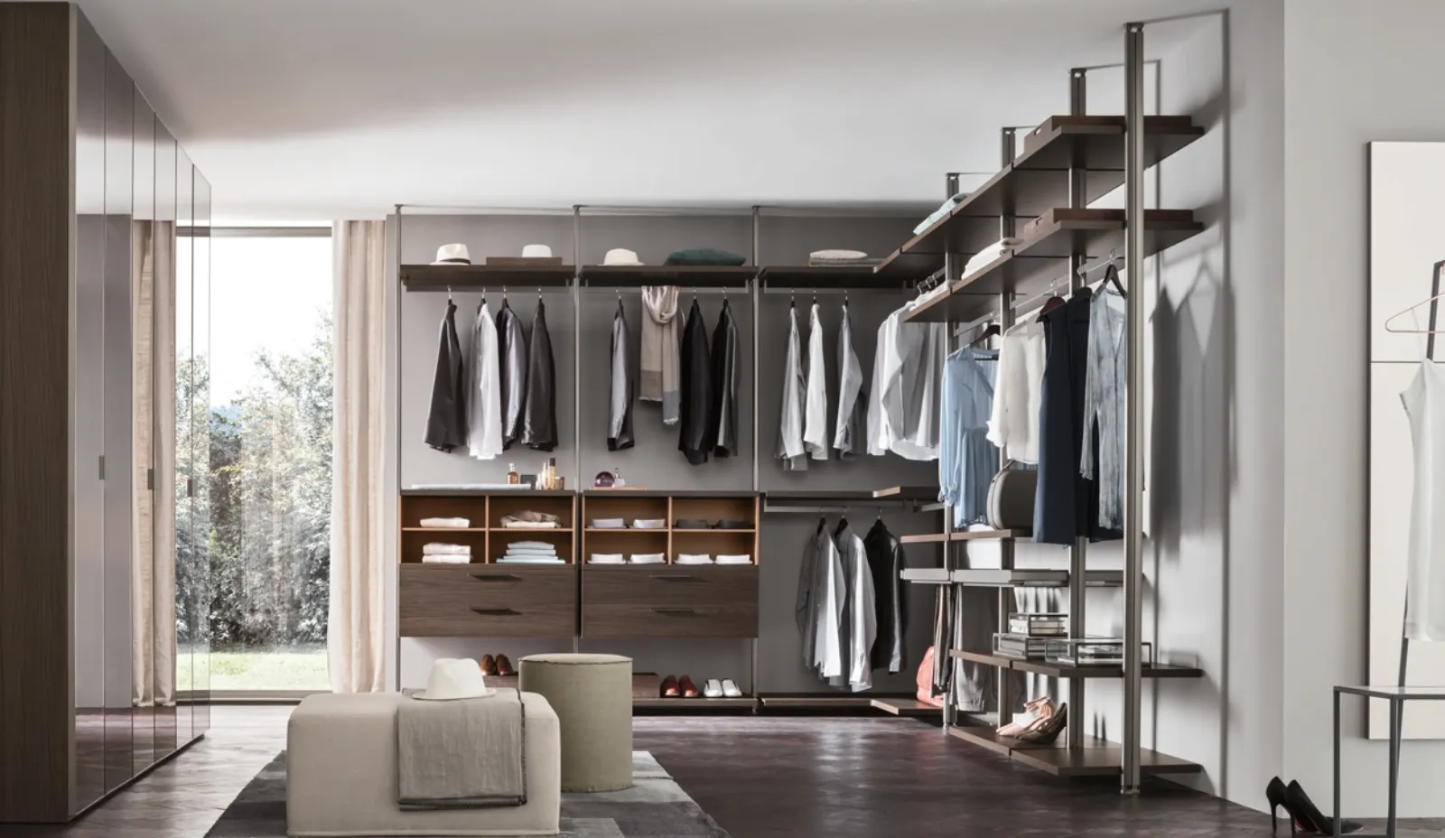 - Componibilità su misura e le doti contenitive tipiche degli arredi con ante scorrevoli