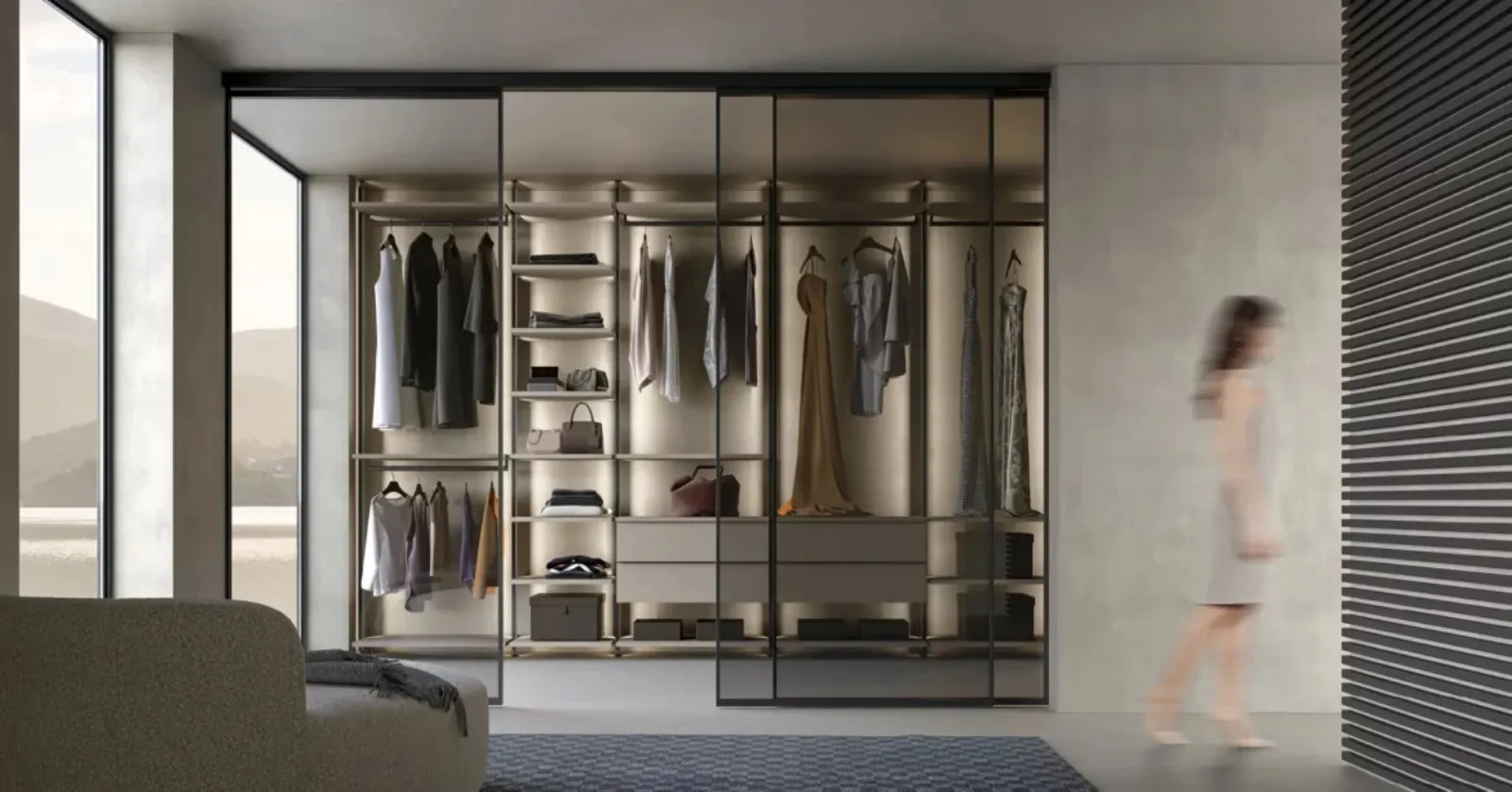 Cabina Armadio Vertical di Adok: lascia che i modelli moderni dell'azienda valorizzino la tua zona del riposo, come questo armadio in laccato opaco. Ottimizza lo spazio della tua zona notte con uno dei modelli con ante scorrevoli, tutti realizzabili su misura per te. Scopri una ricca gamma di soluzioni cabine armadio: