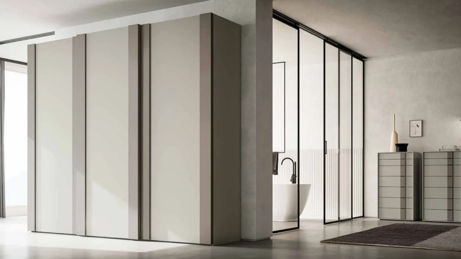 Armadio Double Scorrevole con ante scorrevoli in laccato opaco di SantaLucia, ideale per ultimare una zona del riposo dai richiami moderni nel tuo arredamento casa.