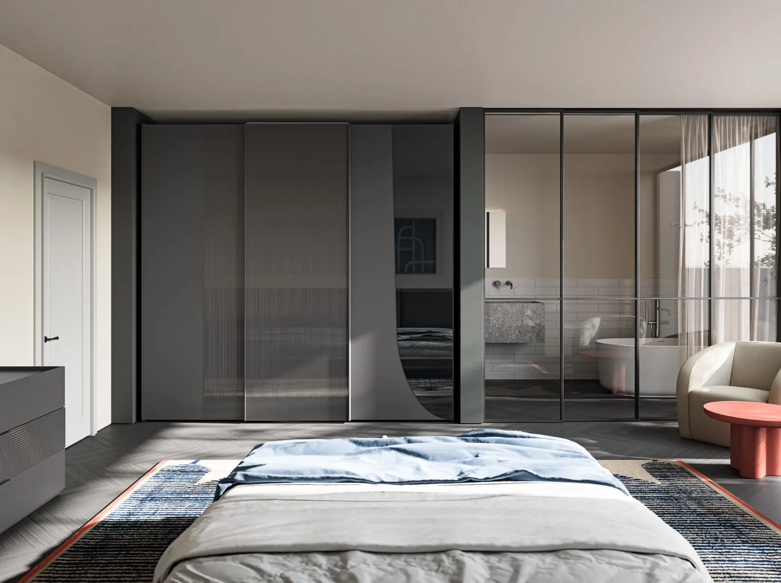 Armadio Eclettica EN01 di Colombini Casa: contattaci per informazioni e preventivi. Scegli il tuo nuovo armadio selezionando attentamente il numero di ante, le dimensioni, le forme e gli abbinamenti di colore. Eclettici e durevoli, spaziosi e realizzabili su misura per te: sono gli Armadi a muro dell'azienda, leader nel settore dell’Arredamento Casa. Nel nostro sito di mobili ed elementi accessori per la zona notte ti attendono varie soluzioni con ante scorrevoli, ideali per completare spazi design di ogni tipo. Il modello presente in foto è realizzato in vetro e saprà garantirti tanto spazio per indumenti e quant'altro e grande valore estetico.