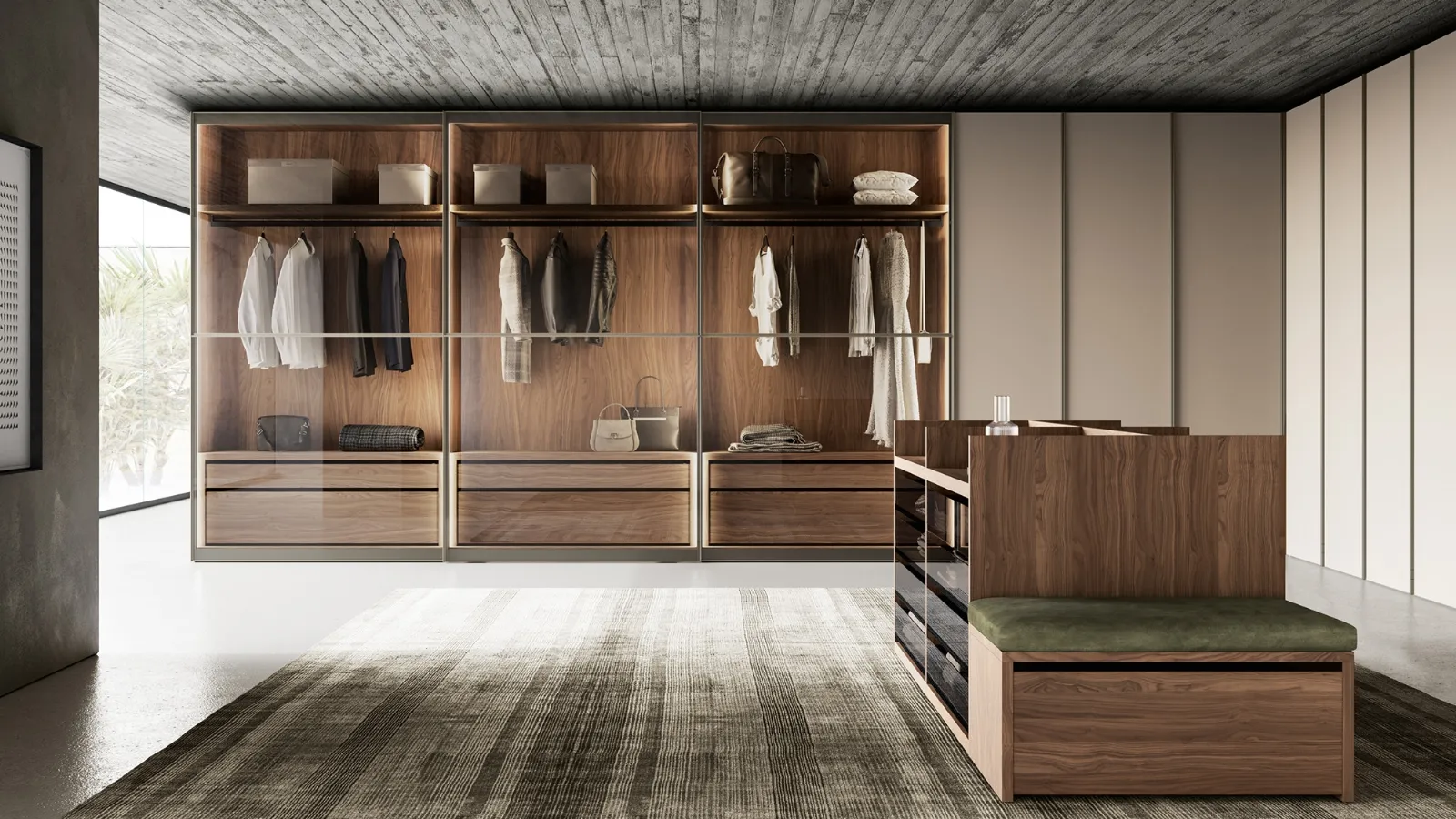 Cabine e armadiature a muro definiscono lo stile e le doti di funzionalità della zona notte, infatti è essenziale valutare attentamente, dimensioni, forme e abbinamenti, sia di colore che stilistici. Armadio con ante scorrevoli Glass Up di Dall'Agnese: arreda la tua zona del riposo con massima componibilità e le doti contenitive tipiche degli arredi con ante scorrevoli del rinomato marchio. Tra i diversi modelli design dei migliori brand di Arredamento Casa, potrai trovare anche l’armadio in vetro visibile in foto: arredi realizzati con materiali pregiati e capaci di assicurare un design unico e tanto spazio per abiti e quant'altro.
