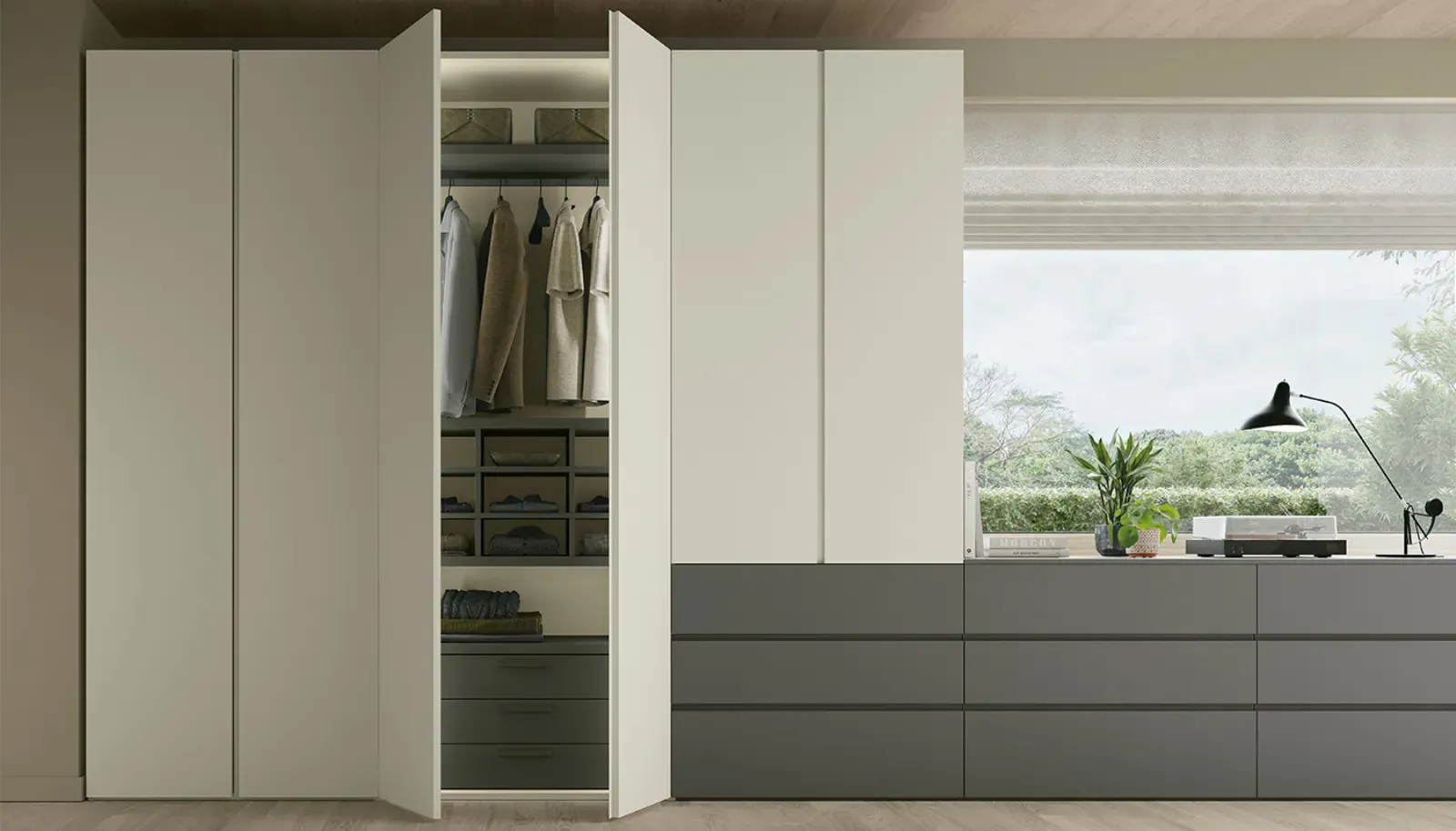 Cabine e armadiature a muro sottolineano lo stile e le doti pratiche della camera, per questo è imprescindibile valutare con attenzione, dimensioni, linee e abbinamenti, sia di colore che stilistici. Armadio con ante battenti Gola di Dielle Modus: arreda la tua zona del riposo con grandi doti di componibilità e le doti contenitive tipiche dei mobili con ante battenti del noto e rinomato brand. Tra i differenti modelli moderni dei migliori produttori di Arredamento Casa, troverai anche l’armadio in melaminico presente in foto: mobili realizzati con materiali di prima scelta e capaci di garantire un design unico e tanto spazio per indumenti e quant'altro.