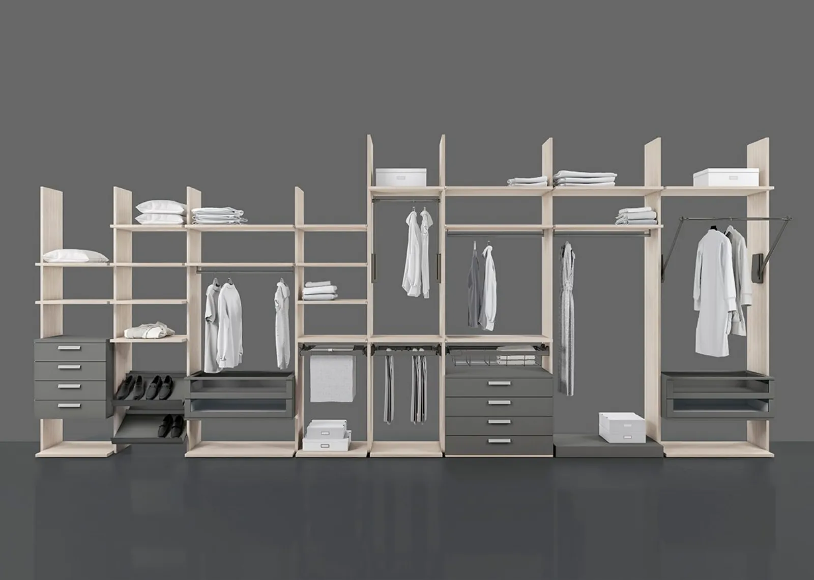 Cabine e armadiature cabine armadio sottolineano lo stile e le doti di funzionalità della camera, difatti è imprescindibile valutare con attenzione, dimensioni, forme e abbinamenti, sia cromatici che stilistici. Cabina Armadio Golf Flexo U49 di Colombini Casa: arreda la tua zona del riposo con grandi doti di componibilità e le doti contenitive tipiche dei prodotti con ante scorrevoli del noto e conosciuto marchio. Tra i diversi modelli moderni dei migliori brand di Arredamento Casa, troverai anche l’armadio in melaminico visibile in foto: arredi realizzati con materiali di qualità e capaci di assicurare uno stile unico e tanto spazio per indumenti e quant'altro.