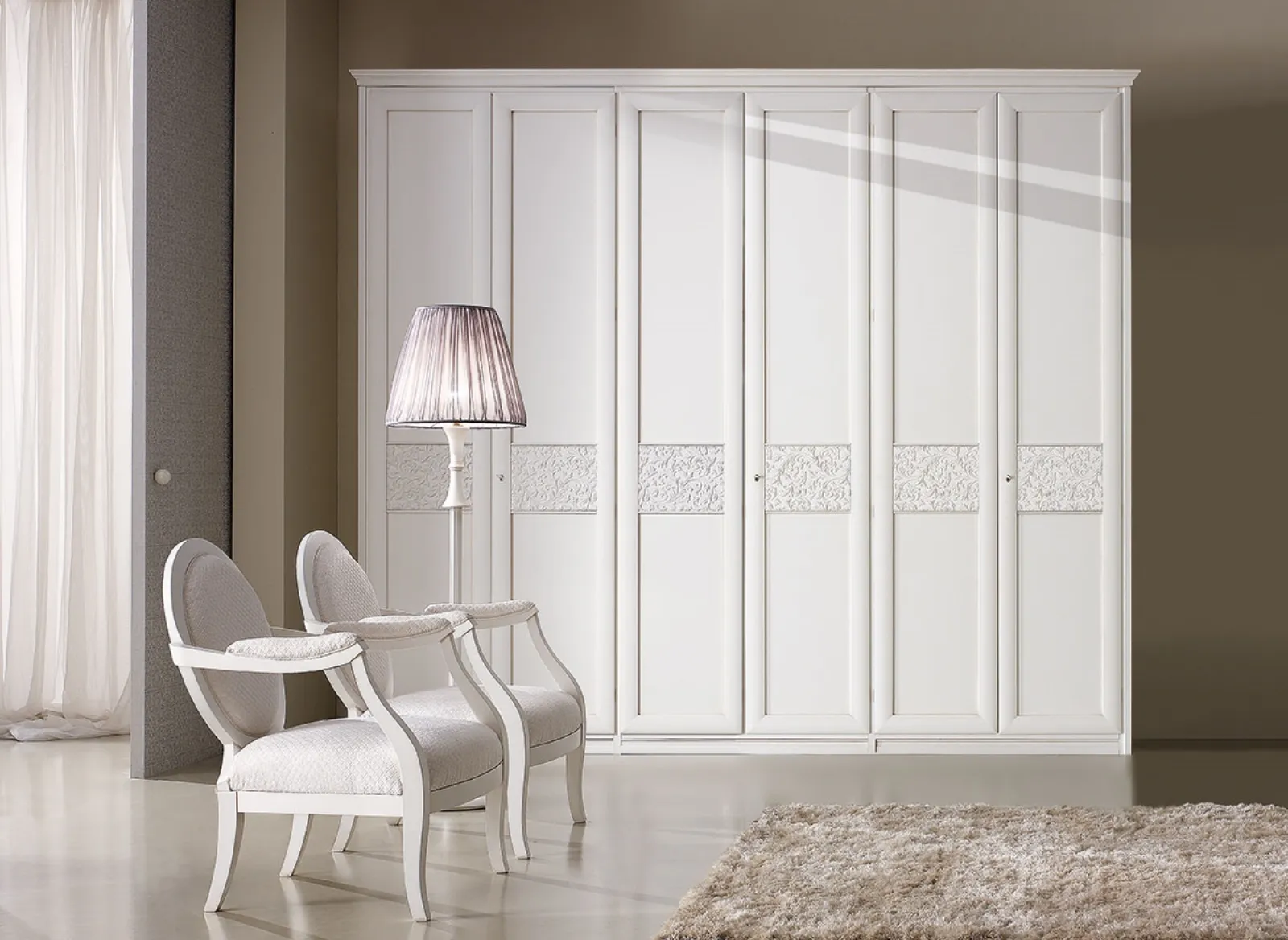 Armadio M203 in laccato opaco con ante battenti: perfetto per spazi classici dallo stile deciso. Marca: Ferretti e Ferretti. Contesto: Arredamento Casa Armadi.