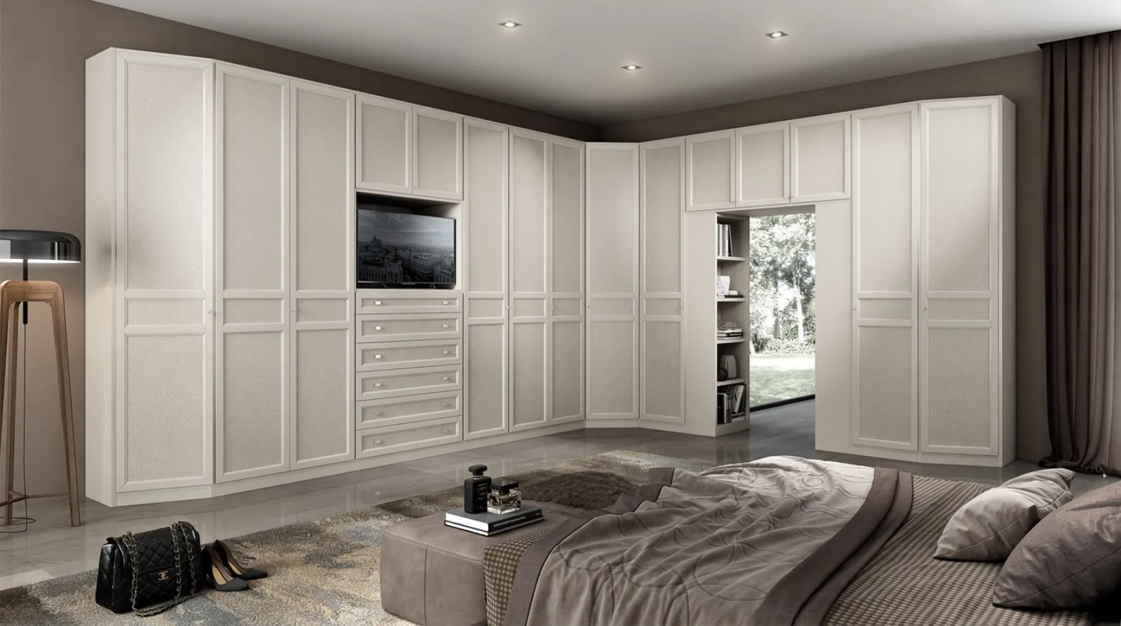 cabine e armadiature ad angolo valorizzano lo stile e le qualità pratiche della zona notte, infatti è imprescindibile valutare con attenzione, dimensioni, linee e abbinamenti, sia cromatici che stilistici.
