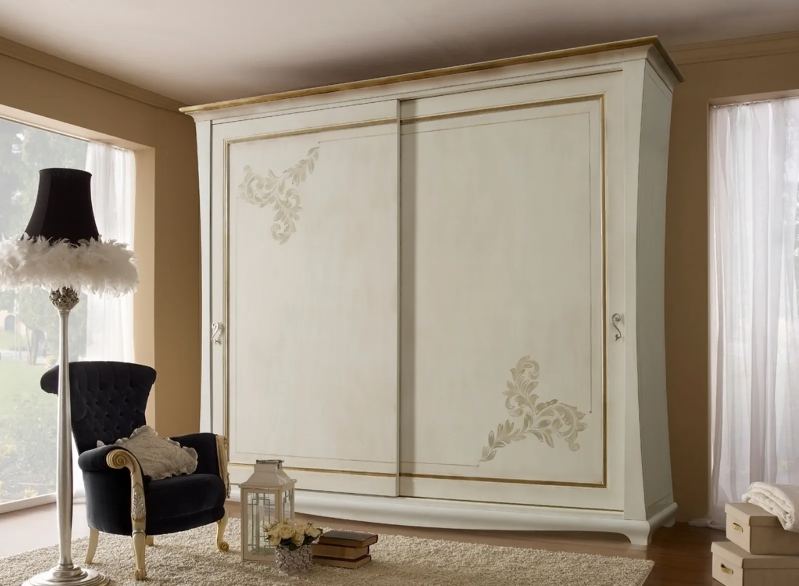 Scopri l'eccellenza del modello Malta di Patina Rosa: armadi a muro con ante scorrevoli dai richiami classici, per arredare la tua casa.