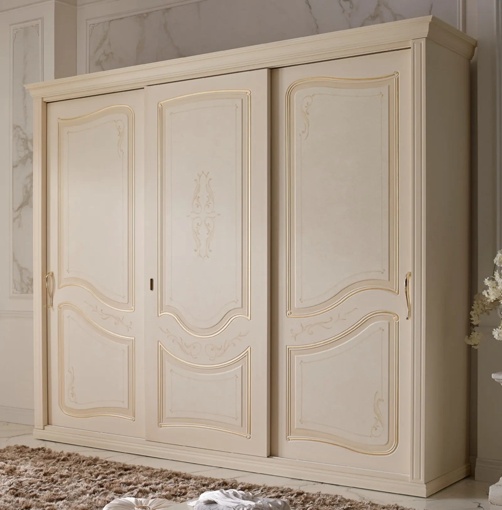 Nel nostro sito di mobili e oggetti accessori per la camera da letto ti attendono differenti soluzioni con ante scorrevoli, ideali per completare spazi classici di ogni tipo. Il modello mostrato in foto è realizzato in laccato opaco e saprà garantirti tanto spazio per capi d'abbigliamento e quant'altro e un'ottima estetica. Scegli il tuo nuovo armadio selezionando con attenzione il numero di ante, le misure, le forme e gli accostamenti cromatici. Armadio Martina di Flex: contattaci per info e preventivi. Poliedrici e di lunga durata, spaziosi e realizzabili su misura: sono gli Armadi a muro della firma, specialista nel settore dell’Arredamento Casa.