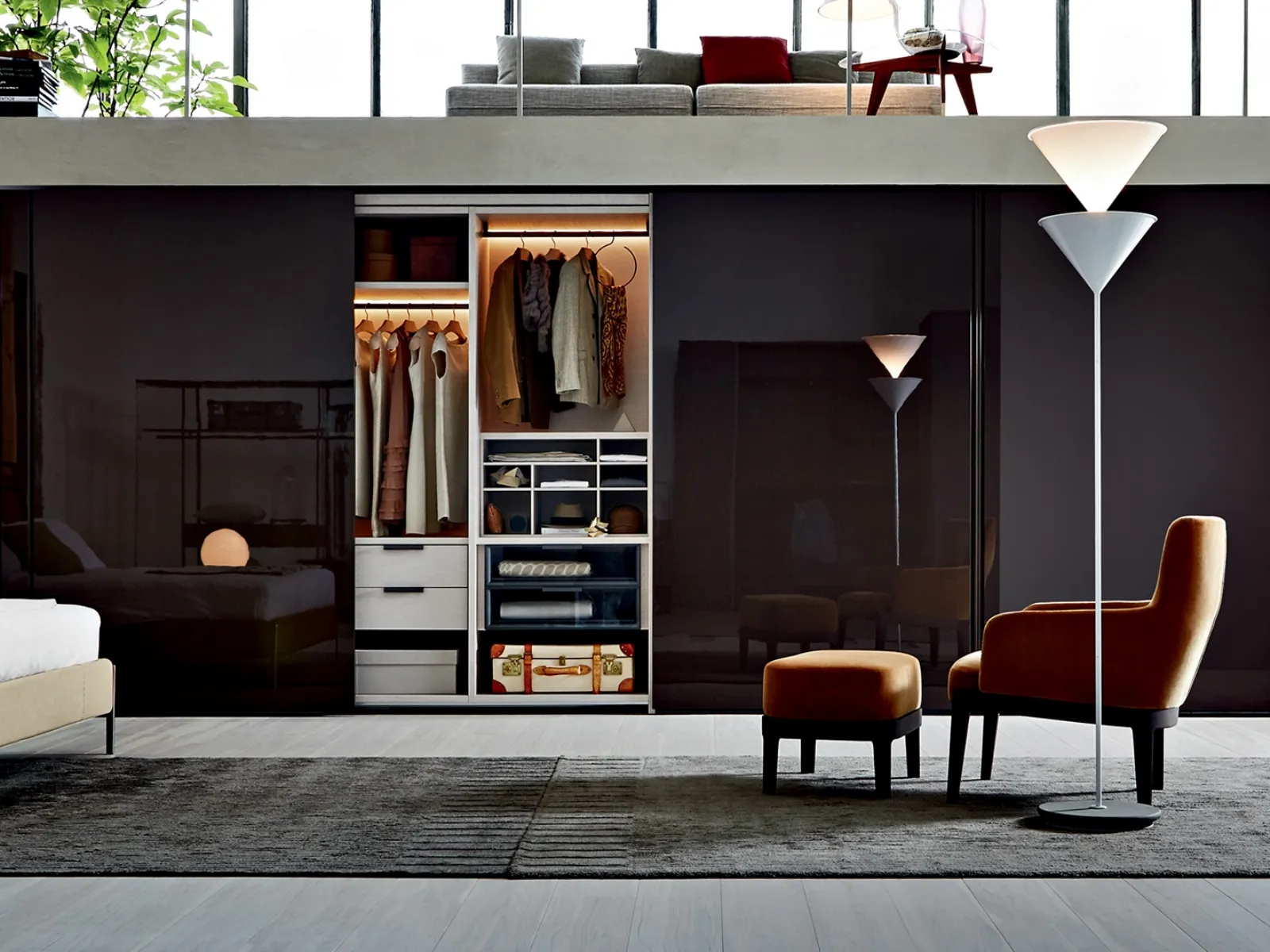 Armadio A filo di Molteni & C: contattaci per info e preventivi. Il modello mostrato in foto è realizzato in vetro e saprà assicurarti tanto spazio per capi d'abbigliamento e quant'altro oltre a grande valore estetico. Nel nostro sito di mobili e complementi per la camera troverai varie soluzioni con ante scorrevoli, ideali per ultimare gli spazi design di ogni genere.