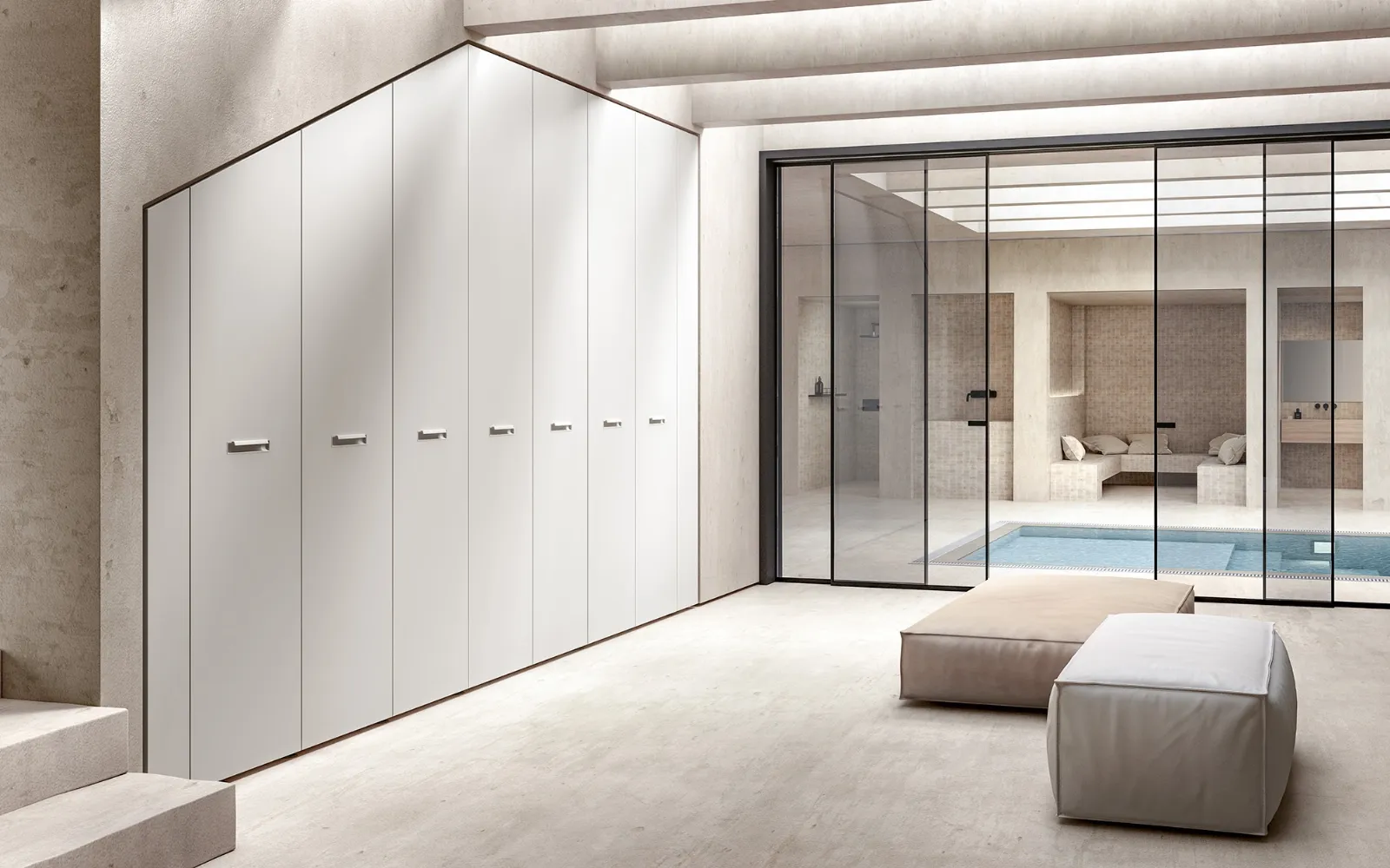 Armadio Opera su misura in laccato opaco con ante battenti, ideale per spazi moderni dallo stile deciso. Marca: Abitare Mobilstella. Contesto: Arredamento Casa Armadi.