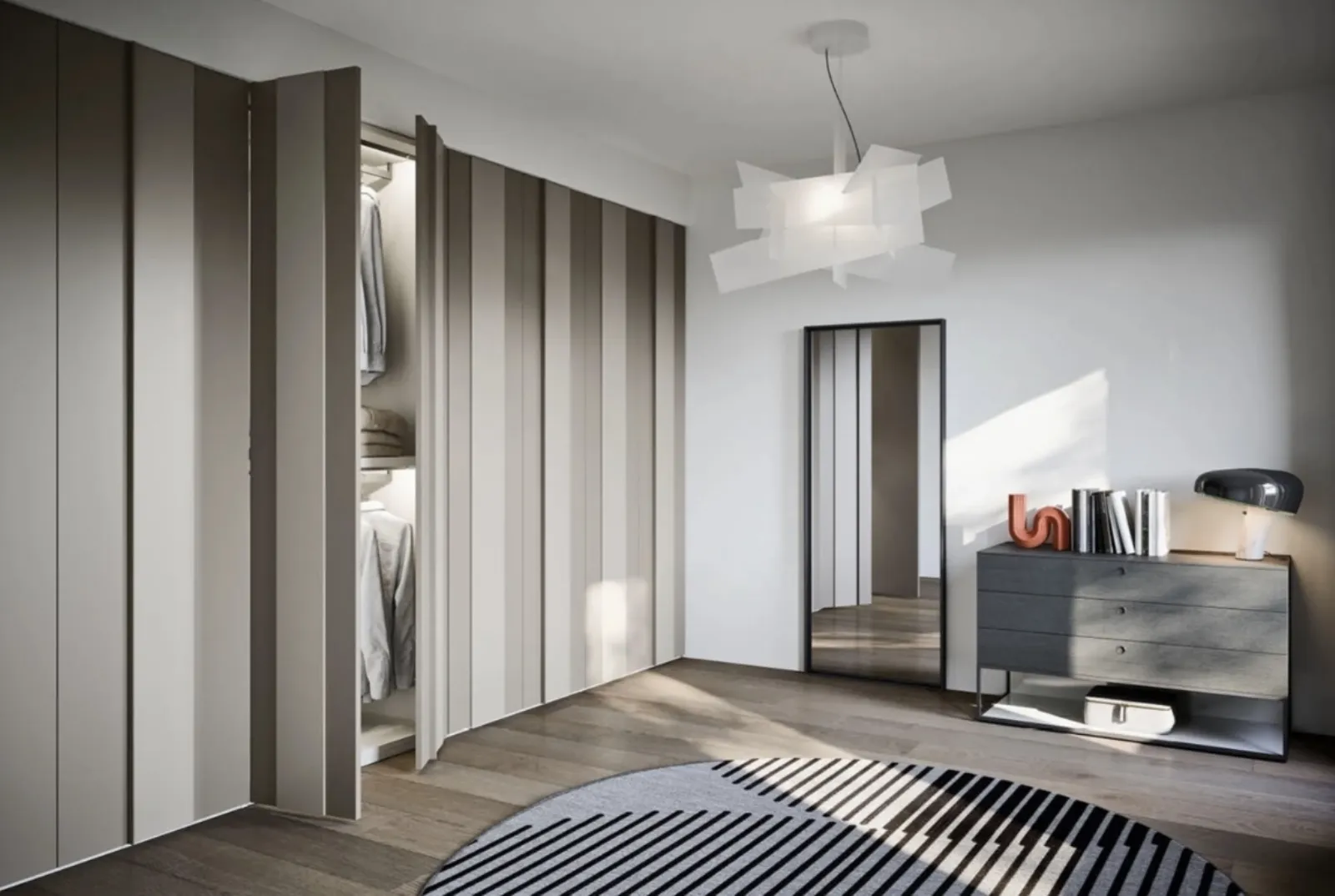 Armadio in legno Plissè di Novamobili: arreda la tua zona notte con un tocco di stile e praticità del marchio italiano. La cabina armadio Plissè rappresenta un modello moderno e di qualità, realizzato con materiali di pregio e dalle linee essenziali. La componibilità personalizzabile e le doti contenitive tipiche degli arredi con ante battenti, permettono di risparmiare spazio e di scegliere la giusta soluzione per la zona notte.