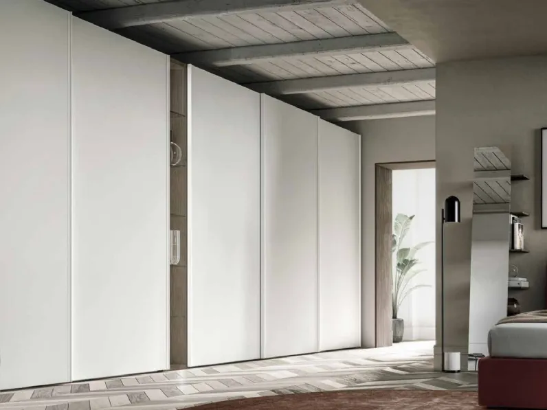 Armadio anta scorrevole Profilo di SantaLucia: arreda la tua zona del riposo con l'alta componibilità e le doti contenitive tipiche dei prodotti con ante scorrevoli del rinomato marchio SantaLucia. Un armadio in laccato opaco che riesce a valorizzare lo stile e le doti di funzionalità della camera, misure, linee e abbinamenti, sia di colore che stilistici. Vantaggi di un armadio anta scorrevole Profilo di SantaLucia: