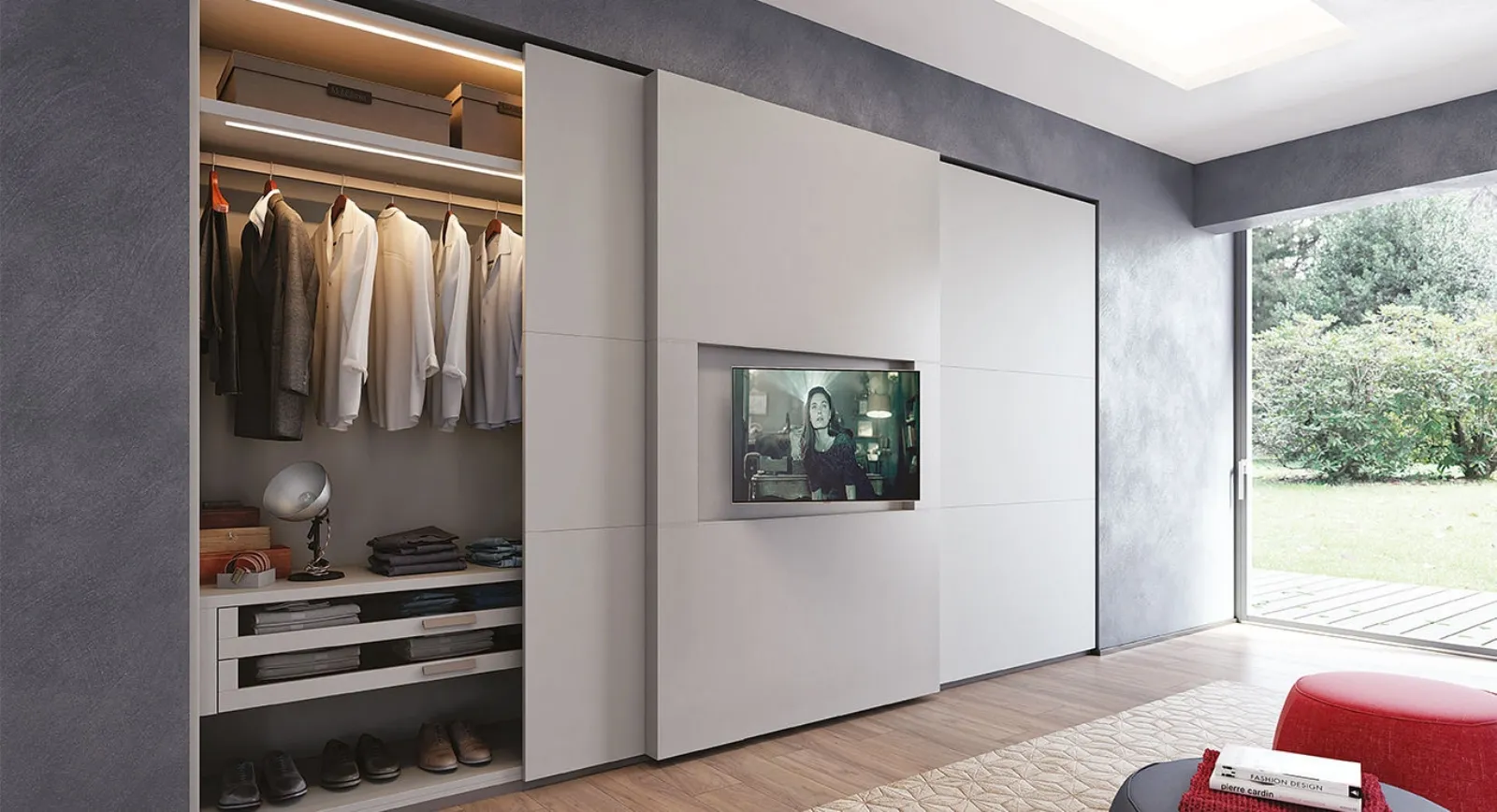Armadio Screen My TV con ante scorrevoli di Mobilform: un arredo per la tua zona del riposo con stile e funzionalità. Scegli tra i diversi modelli moderni dei migliori brand di Arredamento Casa, come l'armadio in laccato opaco presente in foto: arredi realizzati con materiali durevoli e capaci di assicurare un design unico e tanto spazio per indumenti e quant'altro. Valuta attentamente le misure, le linee e gli abbinamenti, sia cromatici che stilistici, così da sfruttare al meglio le doti di funzionalità della tua camera. Caratteristiche del modello: