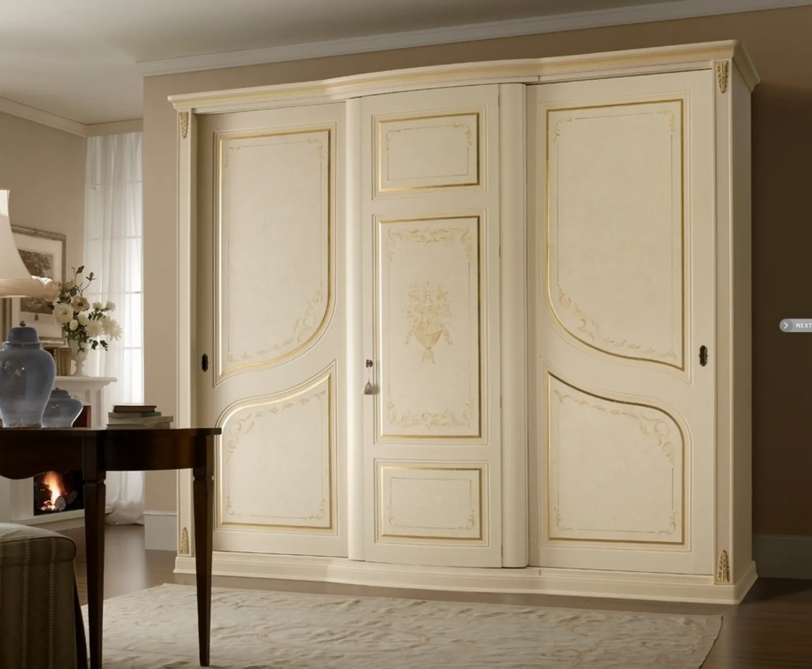 Armadio Smeraldo in laccato opaco con ante battenti di Patina Rosa: il perfetto arredo classico per spazi dal design deciso.