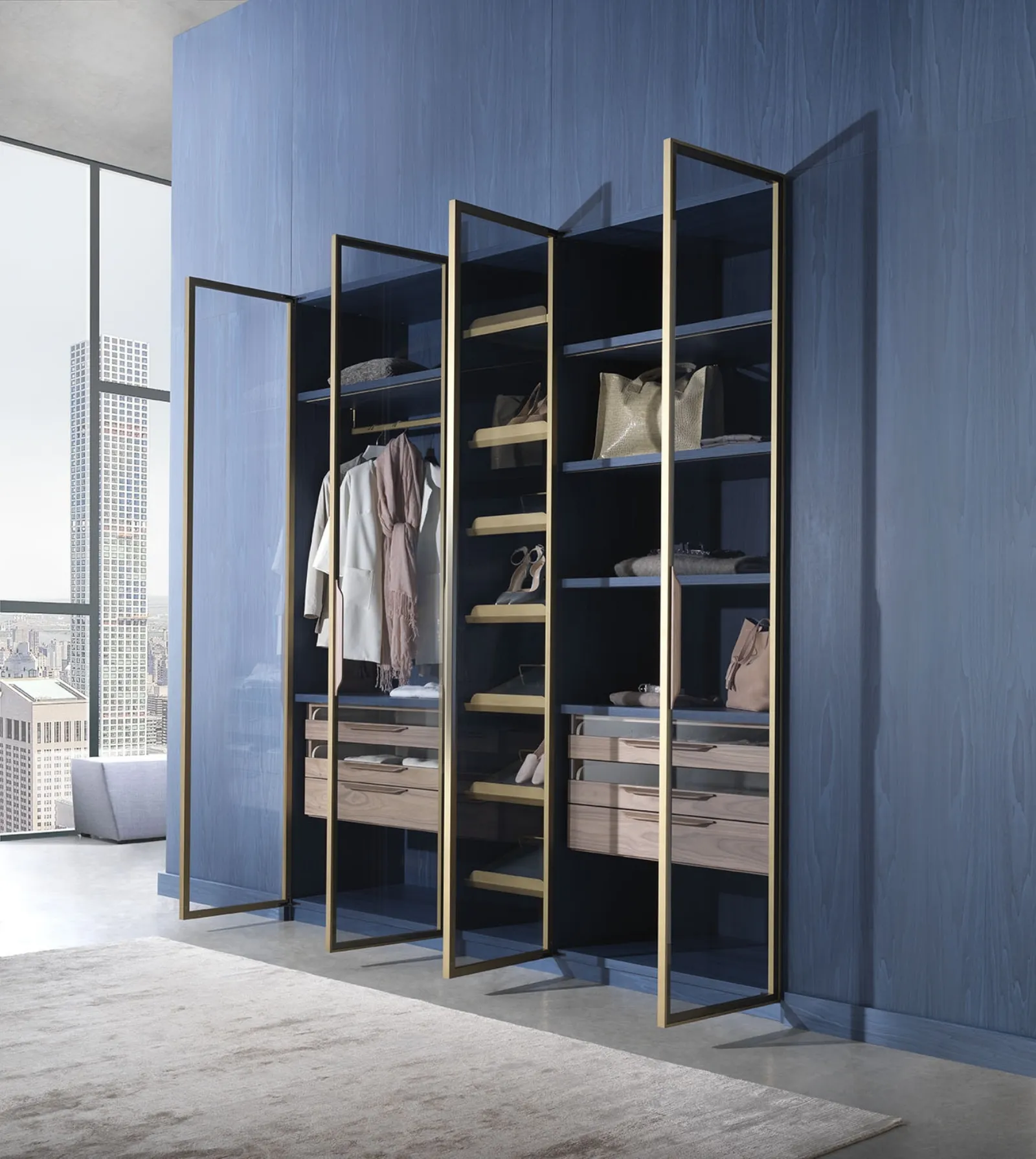 Se vuoi trovare cabine e armadiature cabine armadio con ante battenti per completare la tua camera da letto, scopri nel nostro sito un ricco catalogo di soluzioni per ogni esigenza. Scopri nel nostro sito di Arredamento Casa tutte le proposte in legno come il modello mostrato in foto. Durante la scelta dei mobili ed elementi accessori design è imprescindibile valutare bene lo spazio utile, gli accostamenti di colore e lo stile che definisce i restanti pezzi di arredo. Cabina Armadio Special Project Blu di Arte Brotto: piace per le forme decise e la qualità di finiture e materiali.