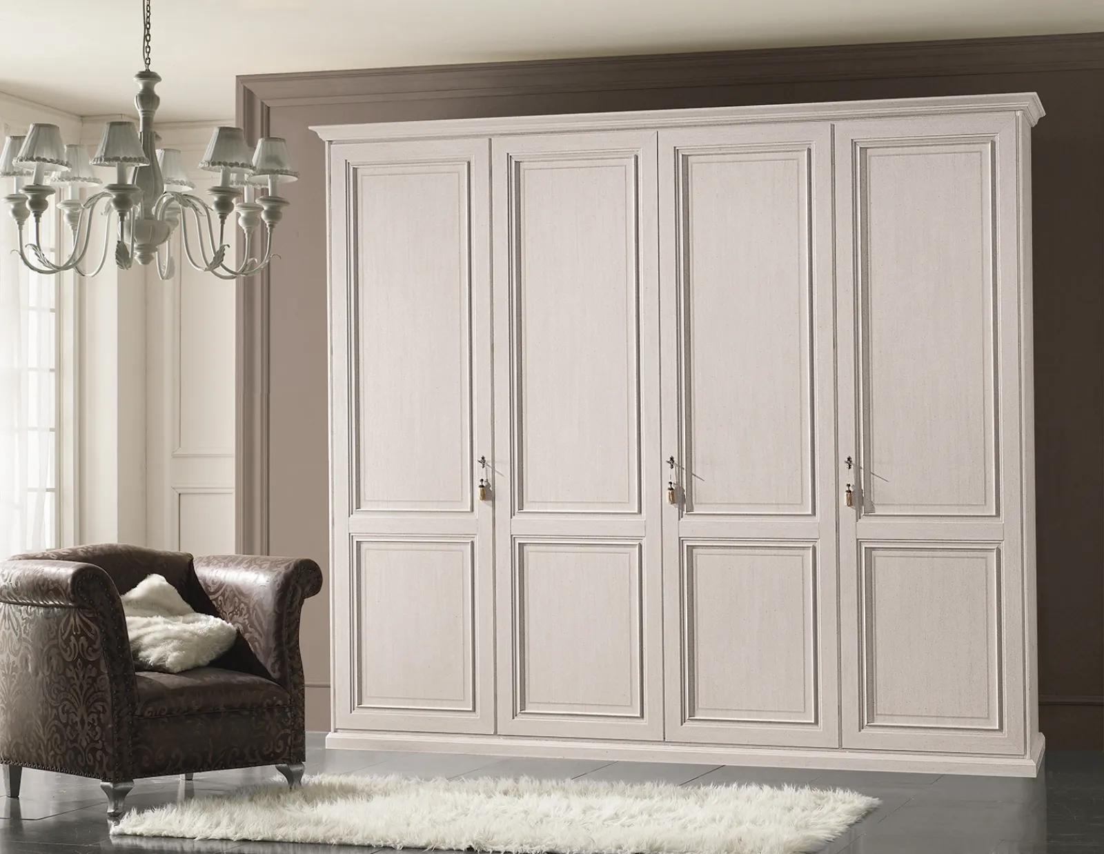 Durante la scelta dei mobili ed elementi accessori classici è imprescindibile valutare bene lo spazio a disposizione, gli accostamenti cromatici e lo stile che determina i restanti oggetti d'arredo e mobili. Se vuoi trovare cabine e armadi a muro con ante battenti per ultimare la tua camera, scopri nel nostro portale un ricco catalogo di soluzioni per ogni esigenza. Armadio Vittoria di Flex: piace per le forme decise e l'eccellenza di finiture e materiali. Scopri nel nostro portale di Arredamento Casa tutte le proposte in legno laccato come il modello visibile in foto.