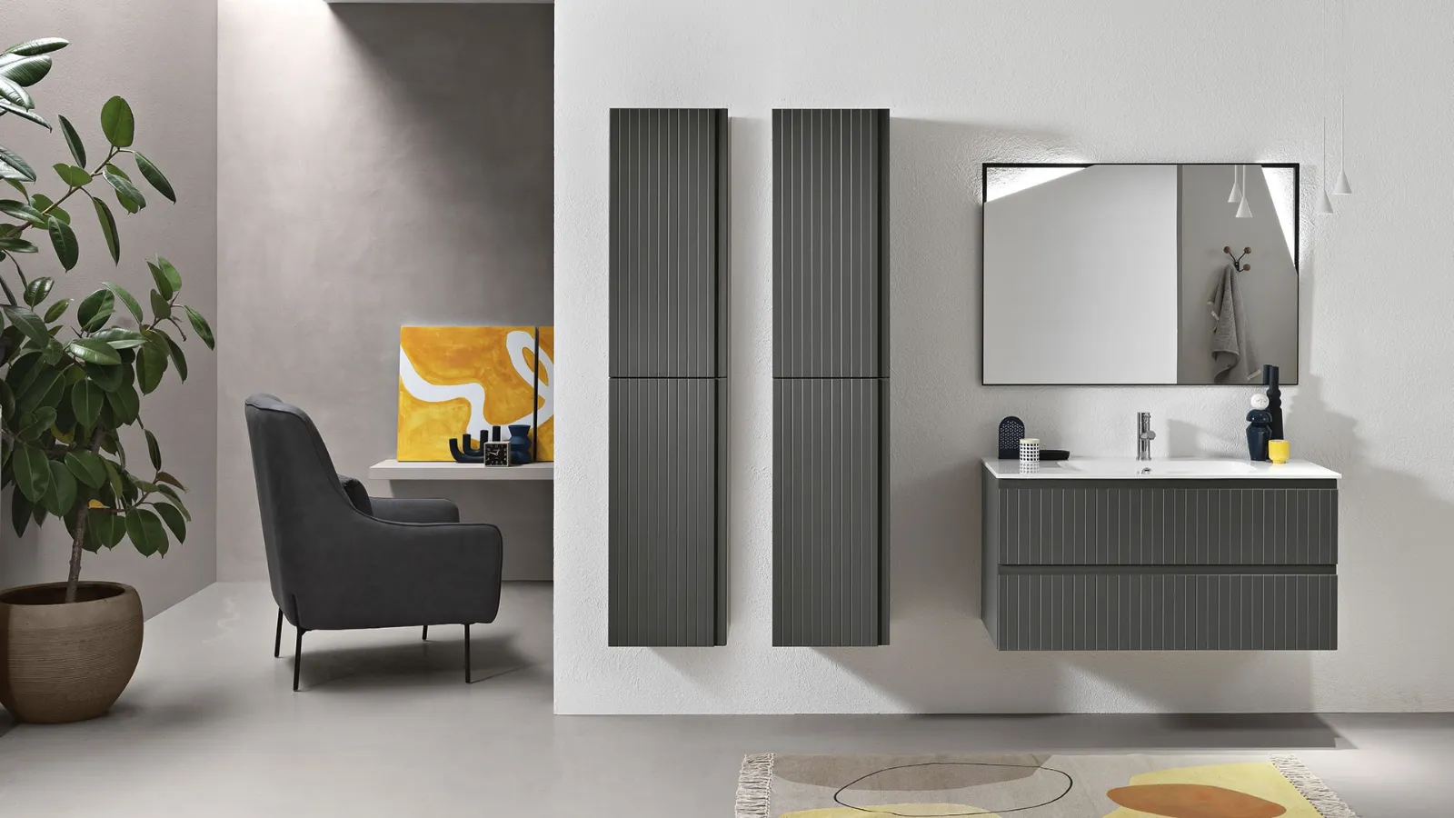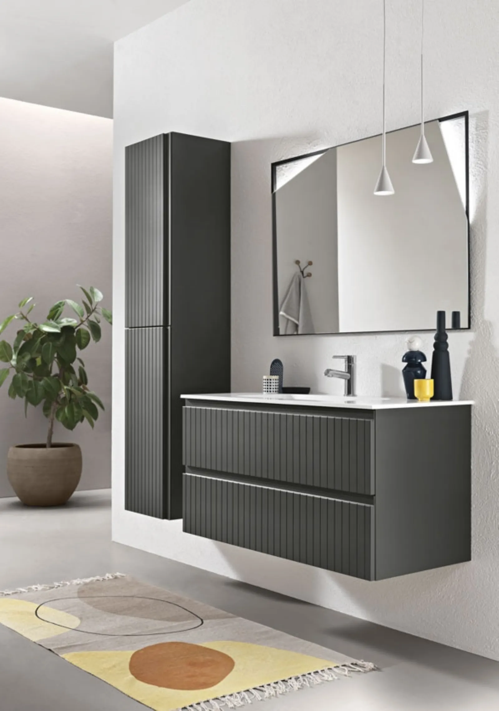 Mobile da Bagno Artico Antracite di Bluelife: Ottimizza il tuo spazio con questo mobile da bagno in laccato opaco. La stanza da bagno è un ambiente come gli altri: essa deve essere arredata con cura e attenzione. Sul nostro sito dedicato all'Arredamento Casa e wellness troverai una vasta selezione di mobili e complementi per la stanza da bagno, wc e bidet, rubinetti e accessori per completare il tuo arredo. Scegli tra le numerose proposte di mobili bagno sospesi e moderni e rendi la tua stanza da bagno unica e di tendenza.