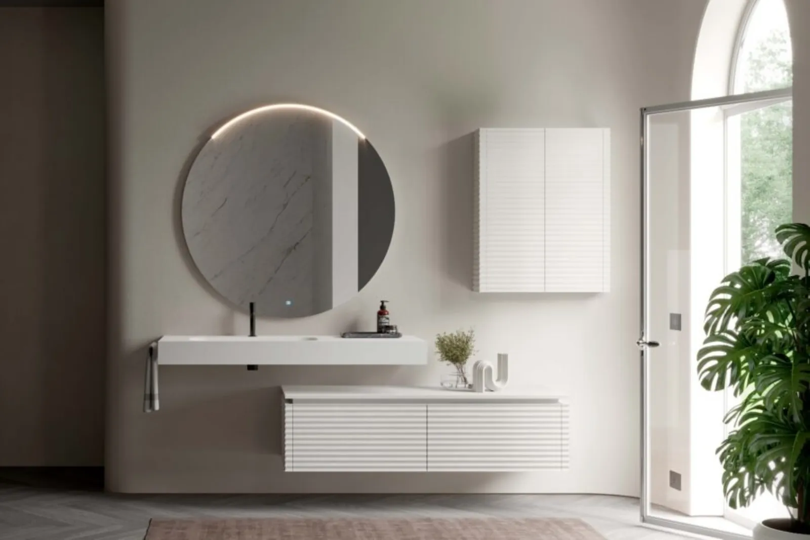Per merito della nostra collezione di mobili ed elementi accessori in legno per la stanza da bagno potrai ultimare il tuo progetto d’arredo dando vita a uno spazio gradevole e funzionale. Nel nostro sito di arredi per il bagno potrai trovare una ricca gamma di mobili bagno sospesi della firma, leader nel campo dell’Arredamento Casa. Compila il form per informazioni e preventivi su questo modello di Mobile da Bagno sospeso in rovere laccato neve Dolcevita 06 di Ideagroup e valorizza i tuoi interni. Massima personalizzazione per il tuo Arredo Bagno design: materiali tecnici che resistano a disparate sostanze o composti e una vasta varietà cromatica ti offrono l'opportunità di creare la stanza da bagno che hai sempre sognato.