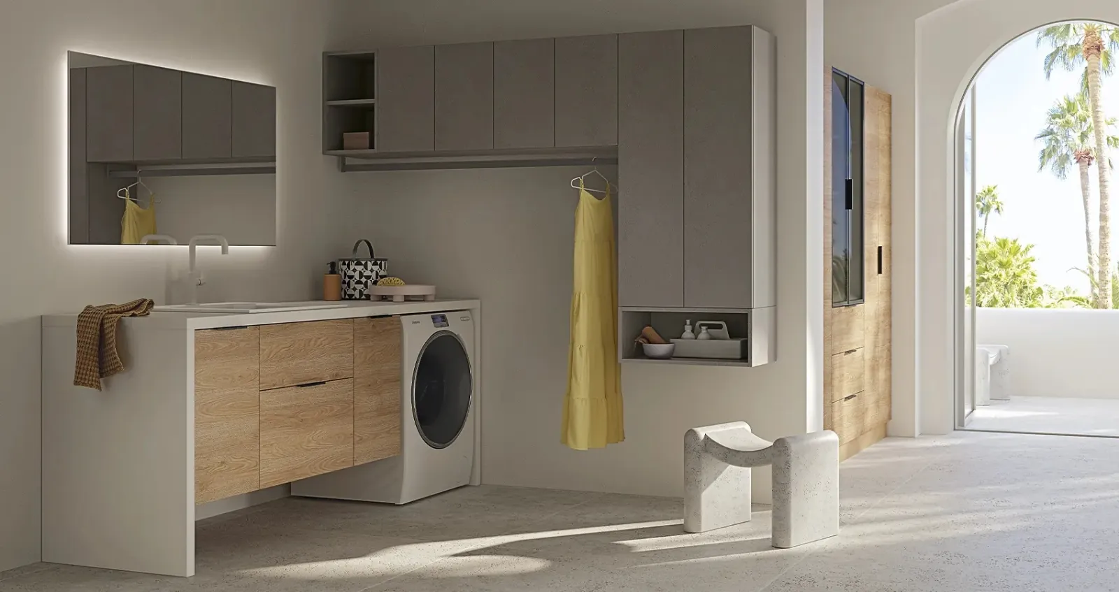 Se desideri completare il tuo concept d’arredo moderno con raffinatezza, funzionalità ed ergonomia, questo modello fa al caso tuo. Mobile da Lavanderia 07 di Kios: le proposte del rinomato brand sono sempre realizzate in materiali durevoli, capaci di resistere negli anni all'azione di umidità e agenti chimici. Arredare e impreziosire la stanza da bagno, luogo in assoluto dedicato alla routine di cura personale, con mobili ed elementi accessori in melaminico che siano belle e resistenti è imprescindibile. Nel nostro sito dedicato all’Arredo Bagno ti mostreremo un'infinità di mobili bagno per lavanderia dei migliori produttori, come il modello visibile in foto.