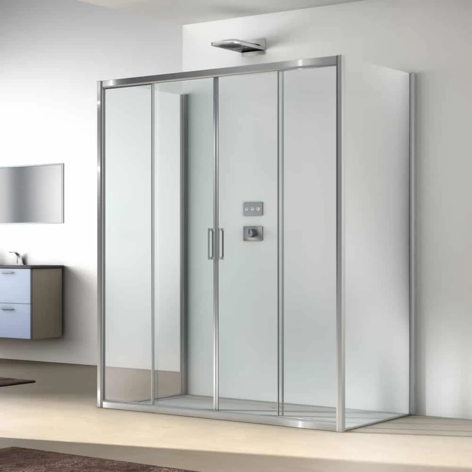 Arredare e completare il bagno, luogo per eccellenza dedicato alla cura della propria persona, con mobili e complementi in vetro che siano di ottima qualità è imprescindibile. Se vuoi completare il tuo progetto d’arredo moderno con raffinatezza, ergonomia e sicurezza, questo modello fa al caso tuo. Nel nostro portale dedicato all’Arredo Bagno scoprirai un'infinità di box doccia dei migliori produttori, come il modello presente in foto. Box Doccia Live di Megius: le proposte del noto e rinomato marchio sono sempre costruite in materiali durevoli, in grado di resistere negli anni all'azione di vapore acqueo e agenti chimici.