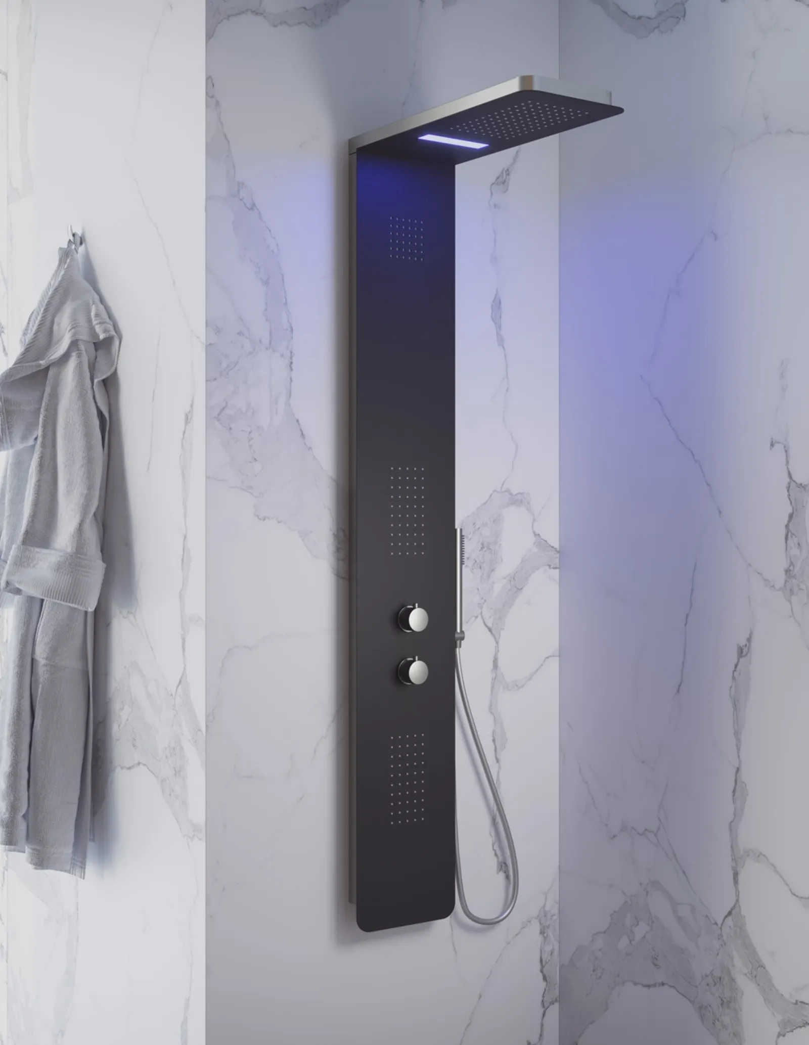 Pannello Doccia Multifunzione Digitale Londra di Vanita Docce: porta comfort e stile alla tua stanza da bagno con questo modello in metallo. Ideale per sfruttare al meglio ogni angolo della tua sala e aggiungere un tocco di personalità unico. La stanza da bagno è un ambiente importante della tua casa e merita la stessa attenzione degli altri locali. Sul nostro sito dedicato all'arredamento casa e al benessere, troverai un ricco catalogo di mobili, complementi e rubinetteria per la sala da bagno, wc e bidet. Scopri le soluzioni di design più belle e trova il prodotto perfetto che soddisfi le tue esigenze:
