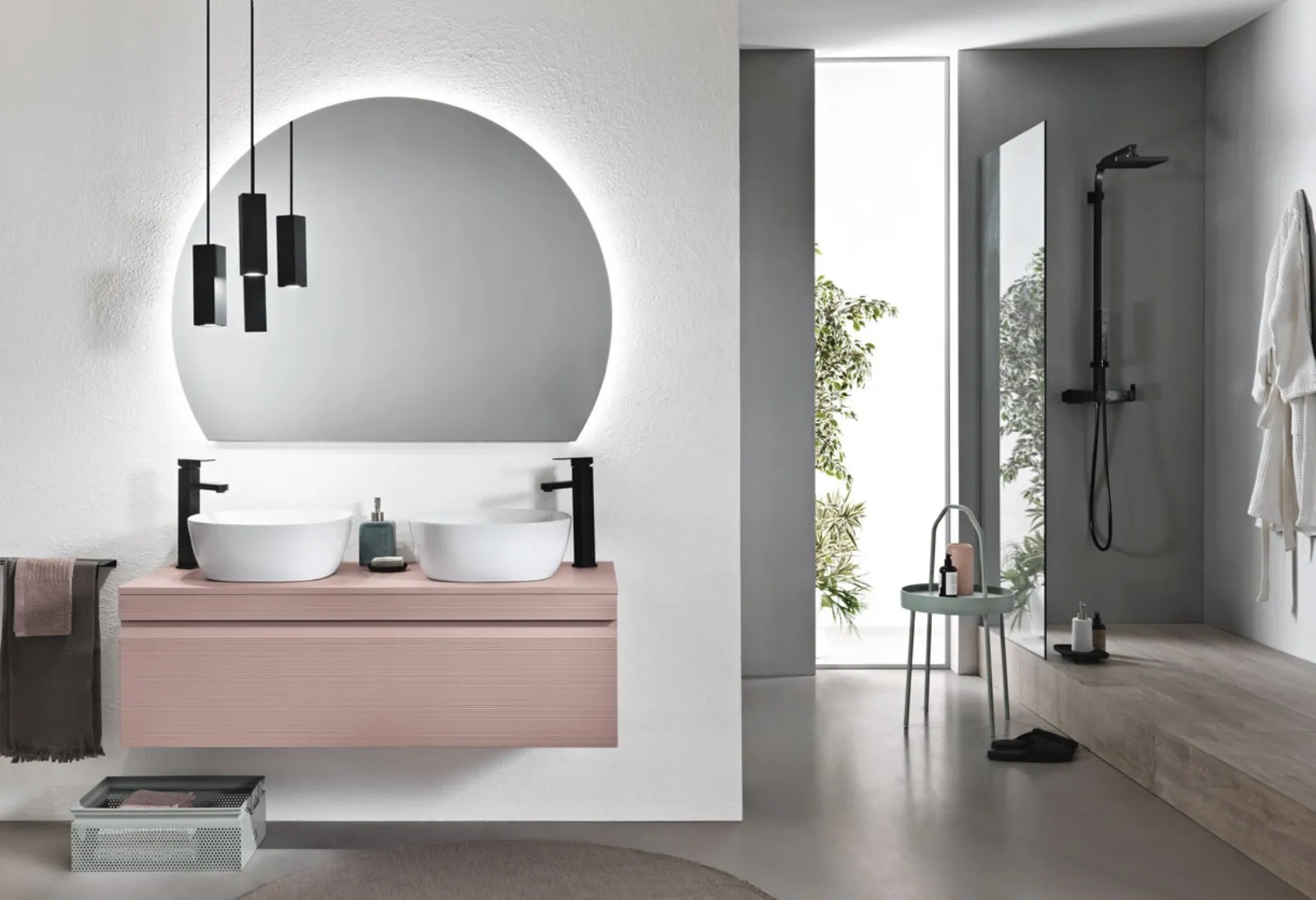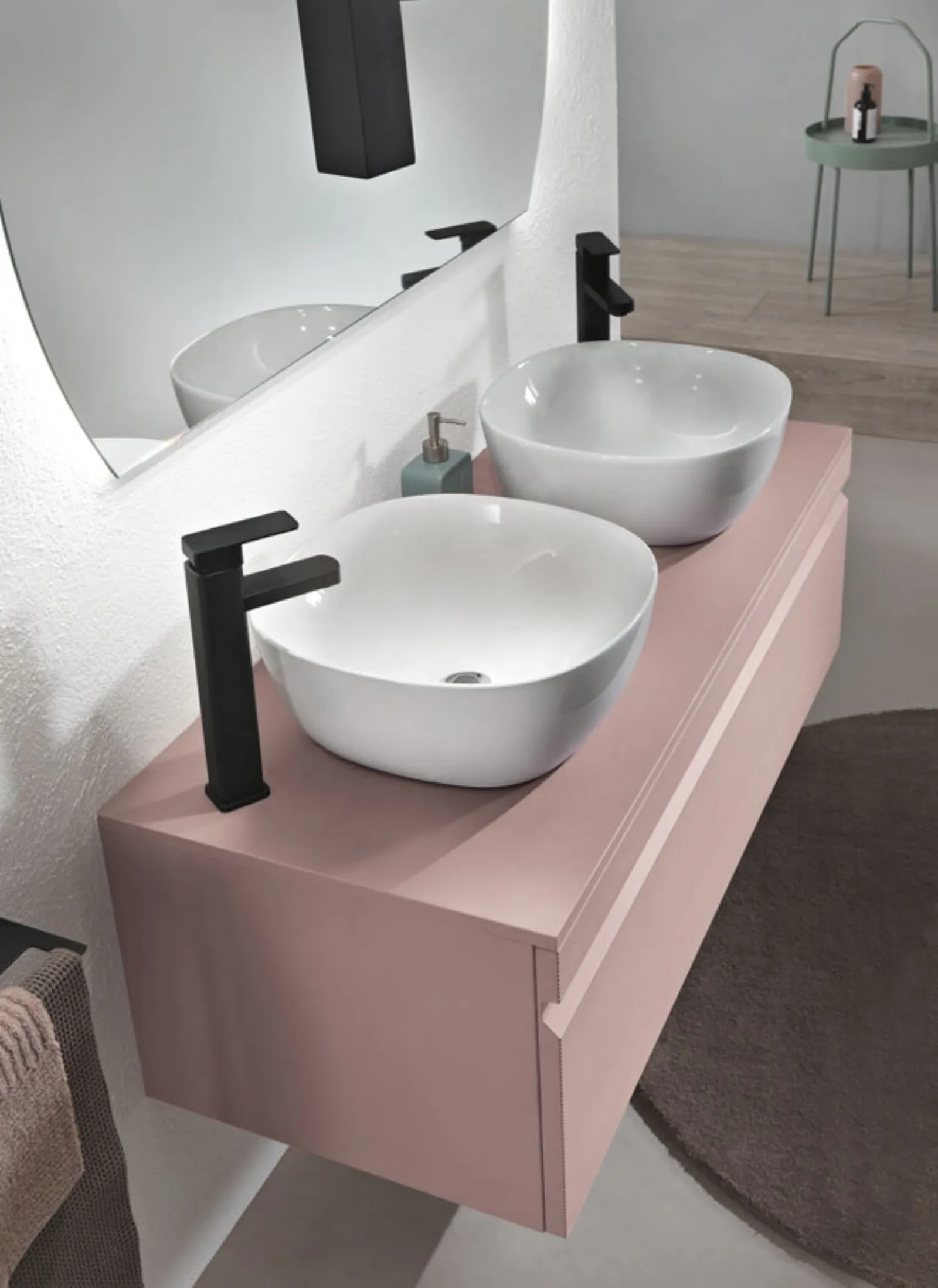 Home - Arredamento Casa - Arredo Bagno - Rio Rosa Polvere con 2 lavabi