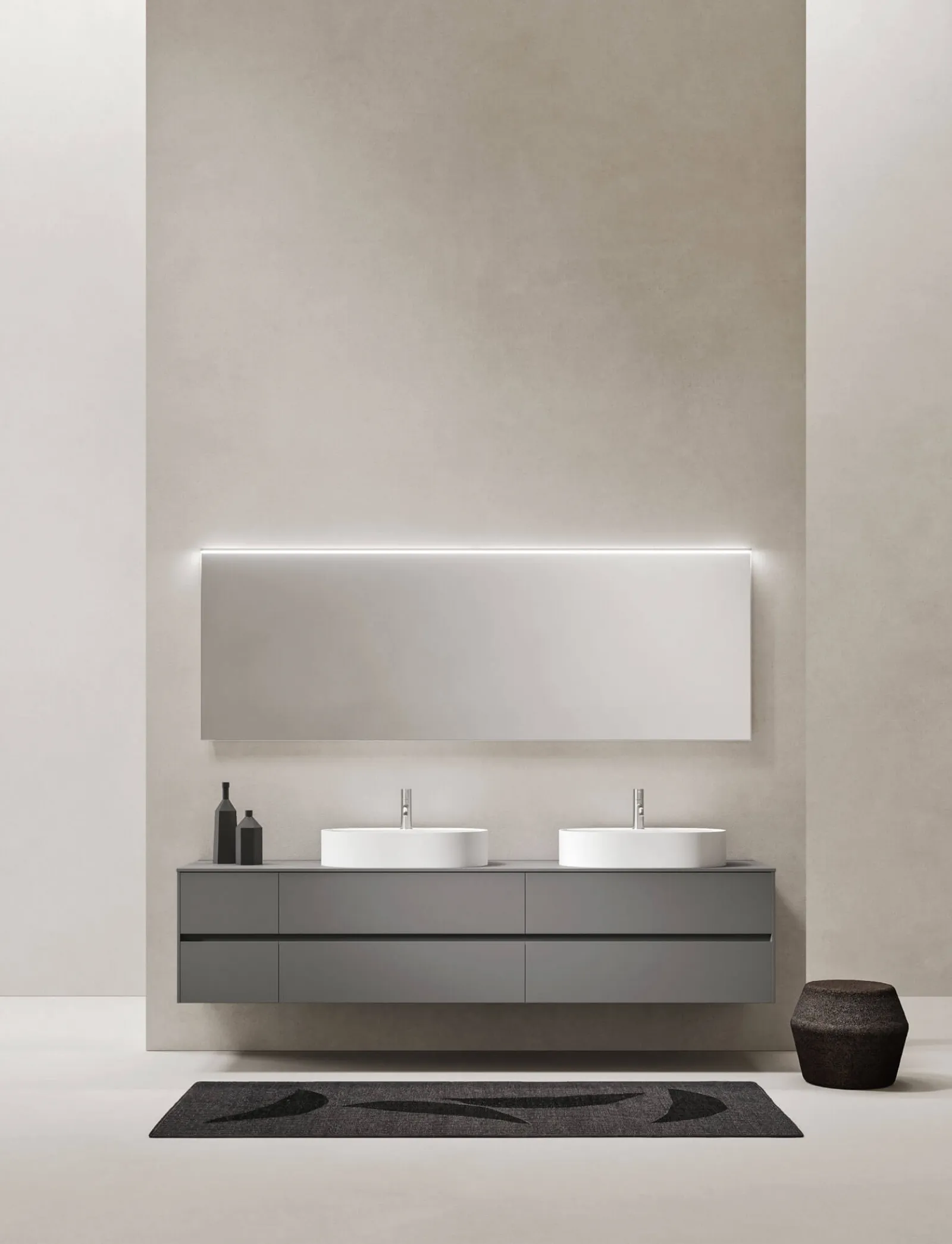 Arredo Bagno Milldue: mobili sospesi in laccato opaco per bagni moderni, modello Sintesi 19 08. Una soluzione ideale per l'arredamento della tua casa.