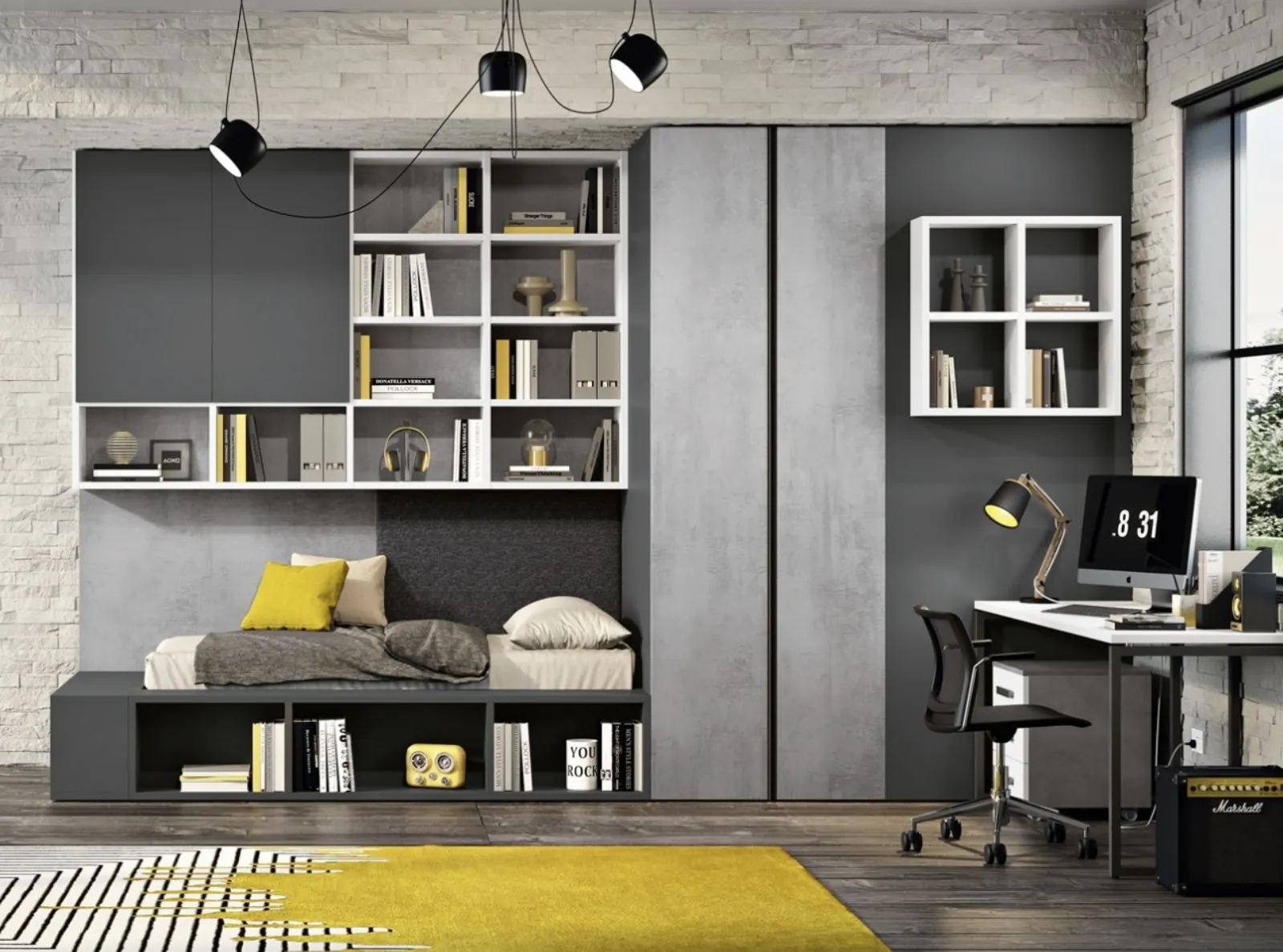 La Cameretta 142 di Ferrimobili qui disponibile arreda la cameretta sfruttando bene ogni spazio, poiché è capace di congiungere funzionalità ed ergonomia, linee decise e cromie vivaci. Se vuoi avere info o preventivi sul modello presente in foto o sulle altre soluzioni per ragazzi dei migliori produttori contatta i store manager del settore arredamento del nostro sito: ti aspettano letti, armadi e comodini, scrivanie e tanto altro. Nel nostro sito di Arredamento Casa ti attende una ricca gamma di Camerette a ponte per i tuoi figli, progetti articolati ideali per accompagnarli durante la loro crescita.