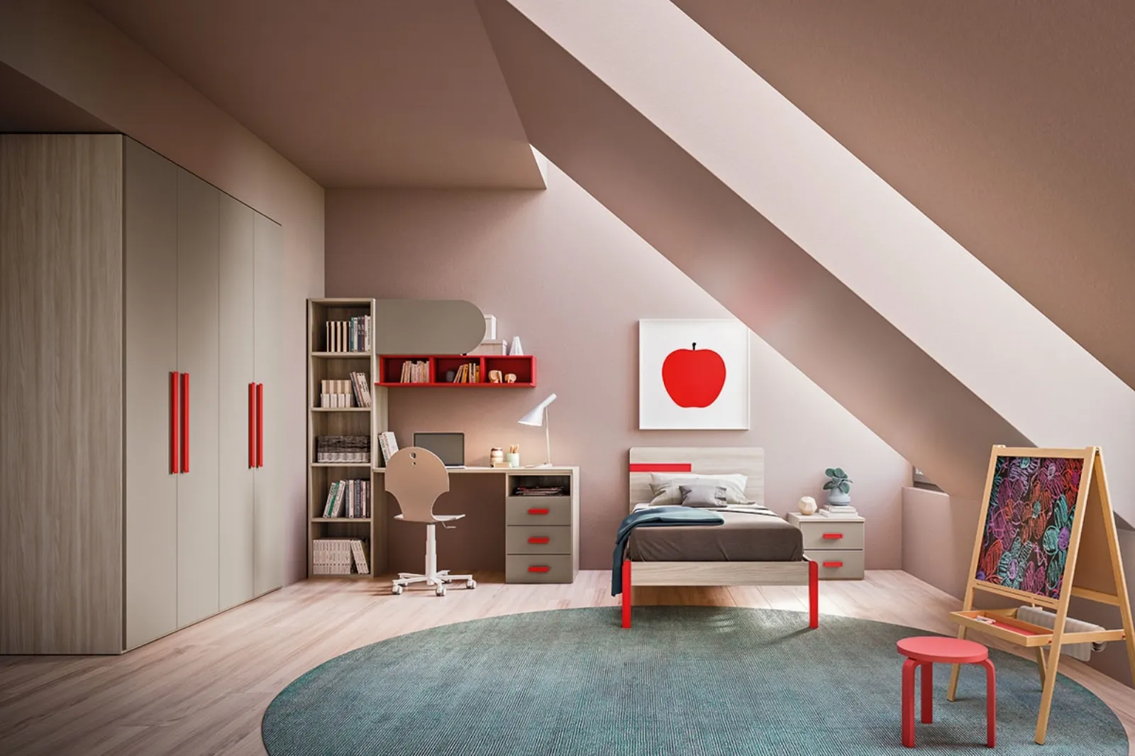 Cameretta dalle linee moderne in melaminico di Mab: scopri le soluzioni componibili per arredare la casa dei ragazzi! Marca Mab, un'idea di arredamento per la tua casa.