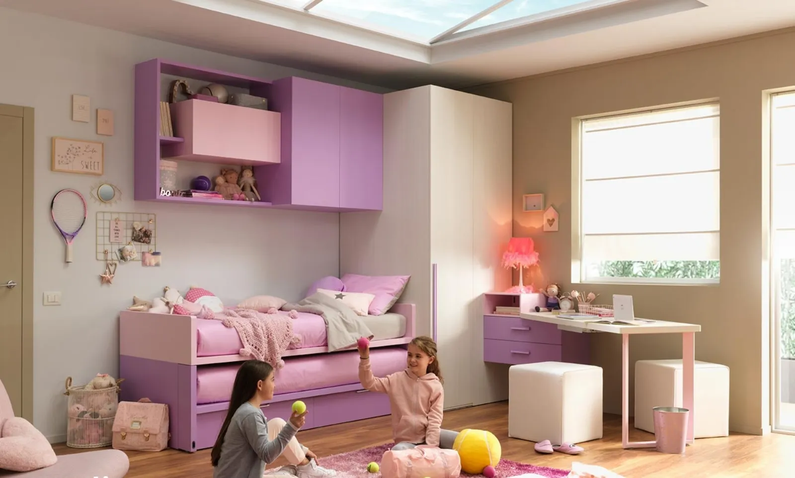 La Cameretta salvaspazio KC416 di Moretti Compact è una soluzione esclusiva per bambine. Nel nostro portale di mobili e complementi per la cameretta troverai svariate soluzioni moderne per arredare lo spazio dei tuoi bambini in modo accogliente, durevole e piacevole. Laccato opaco del marchio leader di Arredamento Casa, offre una soluzione di qualità e dal design fresco e vivace.
