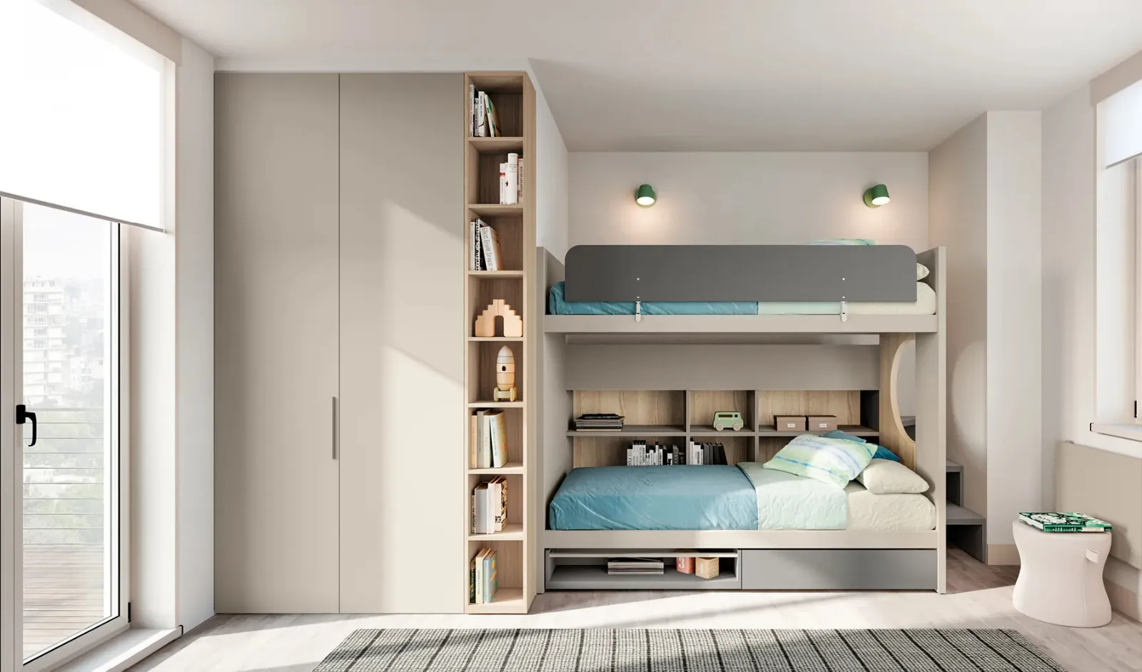 Scopri la Cameretta Layout 11B di Doimo Cityline nell'immagine: potrai completare un interno assai funzionale e sicuro con una tra le soluzioni progettuali con letti a castello più originali dell'azienda. Progettare al meglio la stanza dei nostri figli è essenziale: le Camerette per bambini dell'azienda sono state progettate per accompagnarli mentre crescono. Nel nostro portale ti aspetta una ricca gamma di mobili ed elementi accessori in laccato opaco come questo modello. Contattaci per info e preventivi su una vasta scelta di soluzioni moderne anche realizzabili su misura per te.