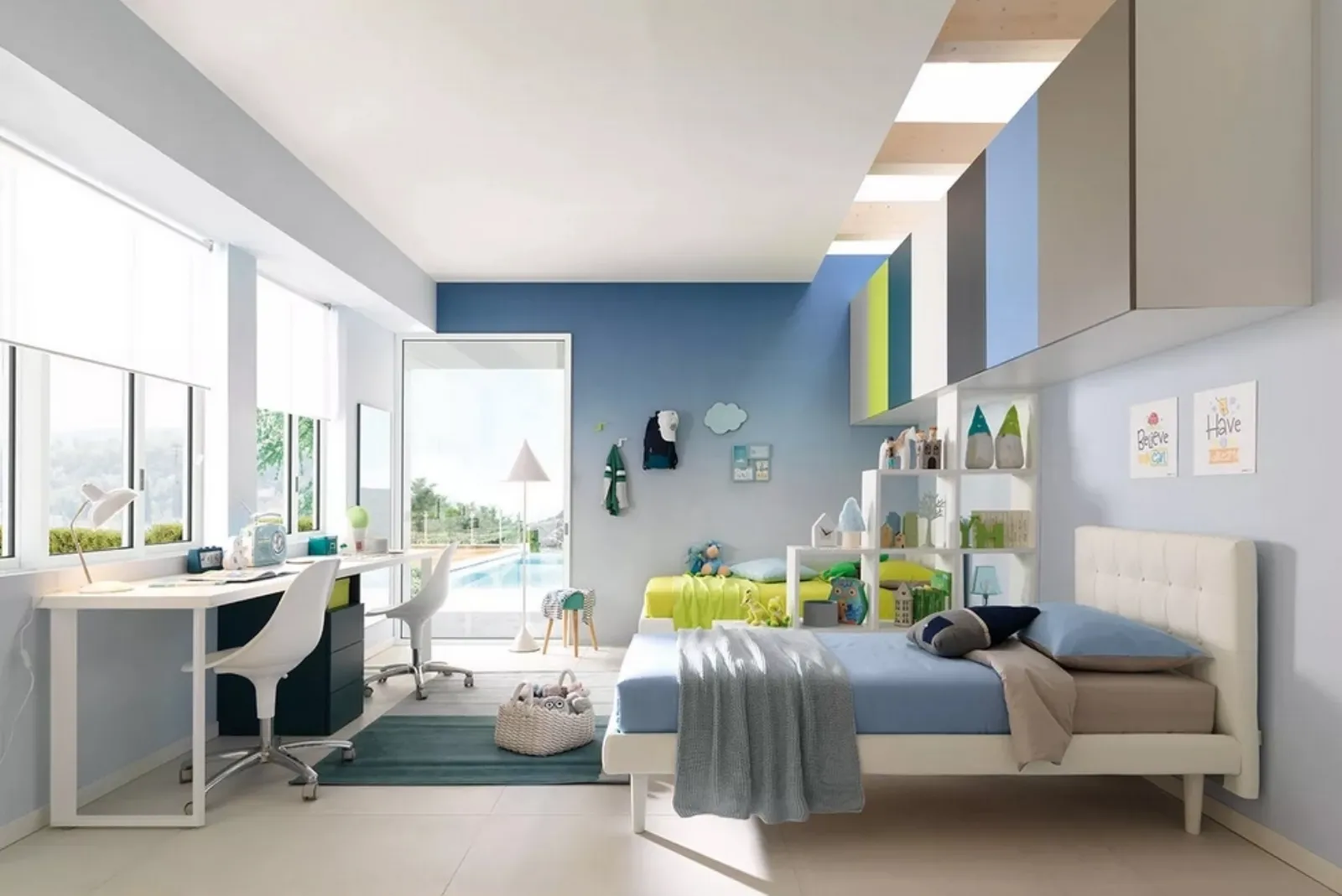 Tutte le camerette a ponte del brand leader del settore sono realizzate con laccato opaco e forme dinamiche per soddisfare il gusto dei bambini e dei loro genitori. Potrai trovare le soluzioni più adatte alle tue esigenze, giustapponendo elementi accessori e arredi su misura.