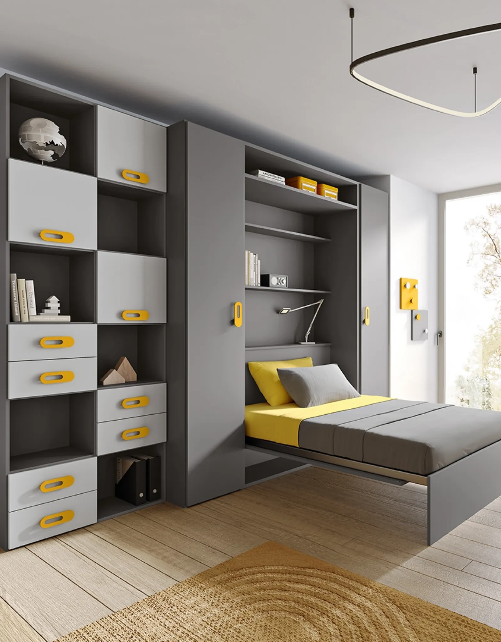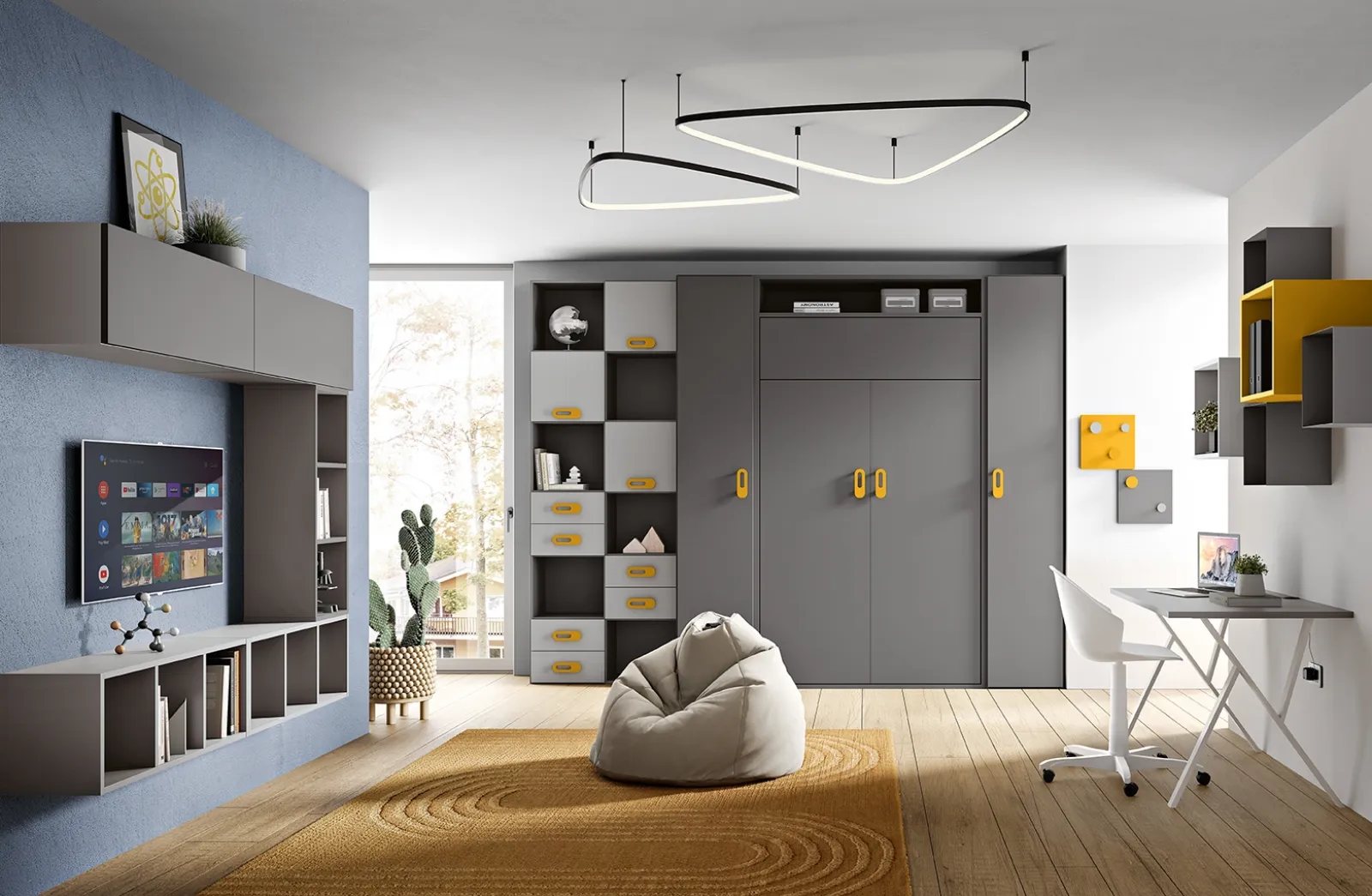 Contattaci per informazioni e preventivi su un'ampia gamma di soluzioni moderne anche realizzabili su misura. Nel nostro portale ti attende una ricca gamma di mobili e complementi in melaminico come questo modello. Decorare al meglio la stanza dei nostri figli è imprescindibile: le Camerette per ragazzi del brand sono state progettate per accompagnarli nella crescita. Scopri la Cameretta Omnia 6-06 di MCSMobili in foto: potrai ultimare un interno accogliente e sicuro con una delle progetti articolati salvaspazio più originali del brand.
