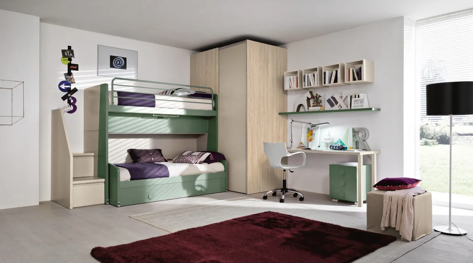 Cameretta con letti a castello SET K26 di Siloma - Arredamento Casa Camerette Il marchio leader Siloma studia camerette con letti a castello che soddisfino il gusto dei giovani e le necessità dei genitori. Ecco a voi la Cameretta con letti a castello SET K26 di Siloma, una soluzione moderna ed ergonomica per i più piccoli. Potrete trovare nel nostro portale dedicato all’Arredamento Casa dei migliori produttori un mondo di soluzioni per bambine da decorare con cura, accostando elementi accessori e mobili anche realizzabili su misura. Scoprite le più esclusive composizioni d'arredo moderne per i più giovani della marca, leader nel settore Arredamento Casa. Se desiderate ergonomia e sicurezza, colori vivaci e conformazioni dinamiche per la cameretta dei vostri bambini, questa proposta in melaminico fa per voi. La Cameretta con letti a castello SET K26 di Siloma è una soluzione che:
