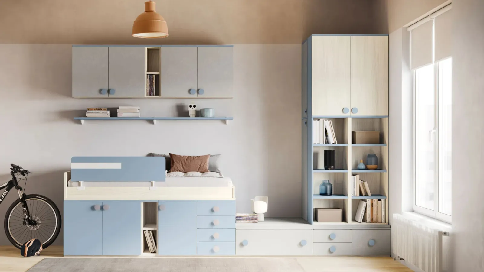Contattaci per informazioni e preventivi su una vasta scelta di soluzioni moderne anche realizzabili su misura per te. Progettare perfettamente la stanza dei nostri figli è imprescindibile: le Camerette per bambini dell'azienda sono pensate per seguirli mentre diventano grandi. Scopri la Cameretta SMART Junior 39 di San Martino Mobili in foto: potrai completare uno spazio accogliente e sicuro con una tra le progetti articolati a soppalco più belle dell'azienda. Nel nostro sito ti aspetta una ricca gamma di mobili e oggetti accessori in melaminico come questo modello.