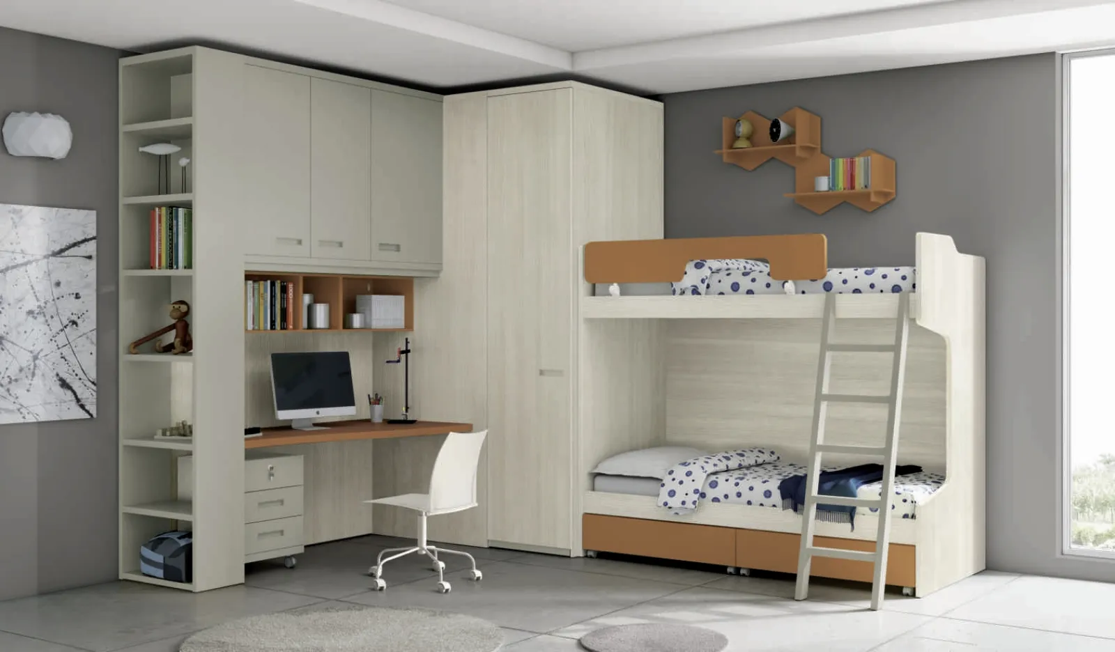 Scopri la collezione di Camerette con letti a castello della marca Spagnol Mobili, leader nel settore Arredamento Casa. Se vuoi funzionalità ed ergonomia, colori vivaci e conformazioni dinamiche per la cameretta dei tuoi bambini, questa soluzione in melaminico fa per te.