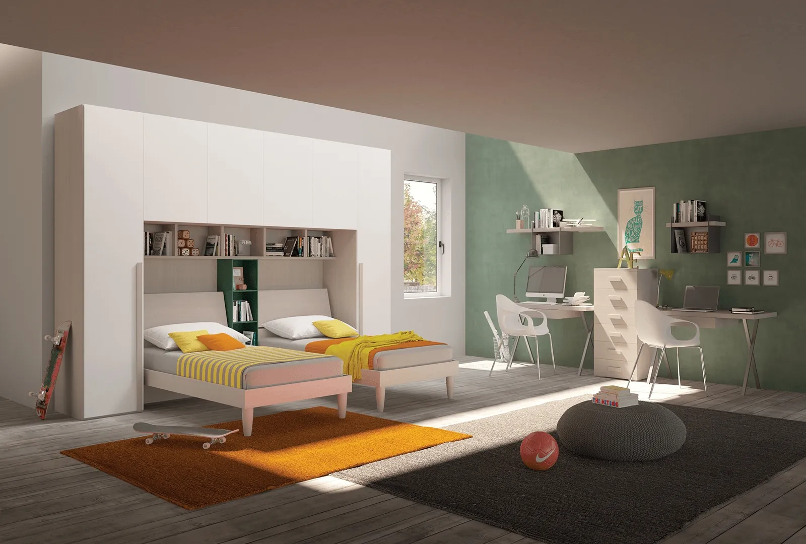 Con questa proposta in melaminico della firma, leader del settore Arredamento Casa, potrai progettare una cameretta assai funzionale, sicura e vivace da vivere. La Cameretta a ponte Young 10 di Felver qui presente è una tra le più originali soluzioni per ragazzi sul mercato. Scopri nel nostro portale un ricco catalogo di Camerette a ponte dei migliori produttori: non mancheranno soluzioni ideali per soddisfare le necessità degli adulti e i gusti dei bambini. Nel nostro portale di mobili ed elementi accessori per la cameretta troverai diverse soluzioni moderne per ultimare al meglio lo spazio dove i tuoi bambini avranno la possibilità di diventare grandi e sognare per anni.