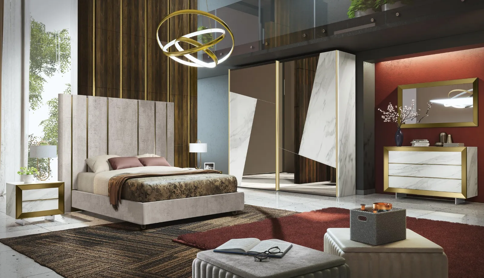 I Comodini sono arredi fondamentali in ogni camera, infatti consentono di ultimare gli spazi usufruendo al meglio di ogni angolo. Gruppo Notte Dorè di Adriatica: è un mobile contenitivo versatile e capace di garantirti funzionalità e un'ottima estetica in una camera dai richiami design. I modelli in vetro della firma, leader nella produzione di armadi e comodini, permettono di creare abbinamenti ad hoc ma anche avere caratteristiche in equilibrato contrasto con il resto degli arredi.
