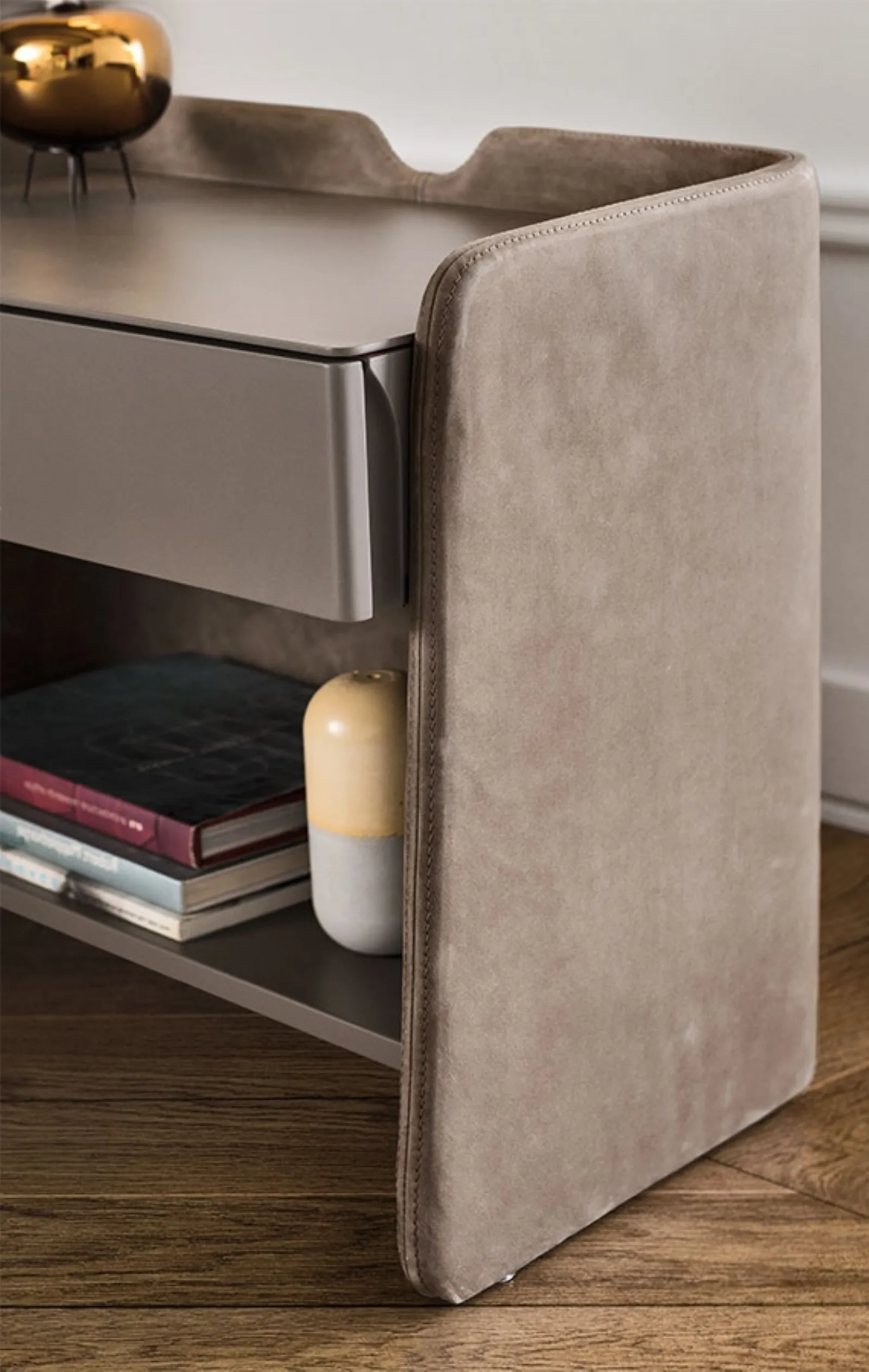 Comodino Chloé in laccato opaco e pelle di Pianca: è un mobile contenitivo versatile e capace di garantirti funzionalità e un'ottima resa estetica in una camera dai richiami design. I Comodini sono mobili fondamentali in ogni camera, per questo offrono l'opportunità di ultimare gli spazi ottimizzando ogni angolo. Le proposte in laccato opaco del marchio, leader nella produzione di armadi e comò, consentono di ricreare abbinamenti ad hoc ma anche avere caratteristiche in voluto contrasto con i restanti arredi.