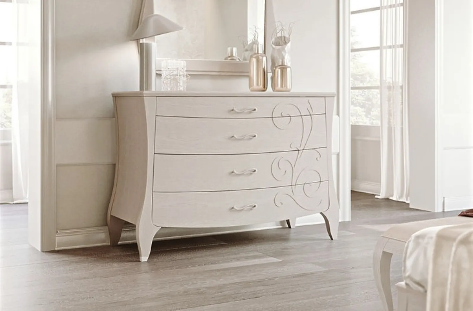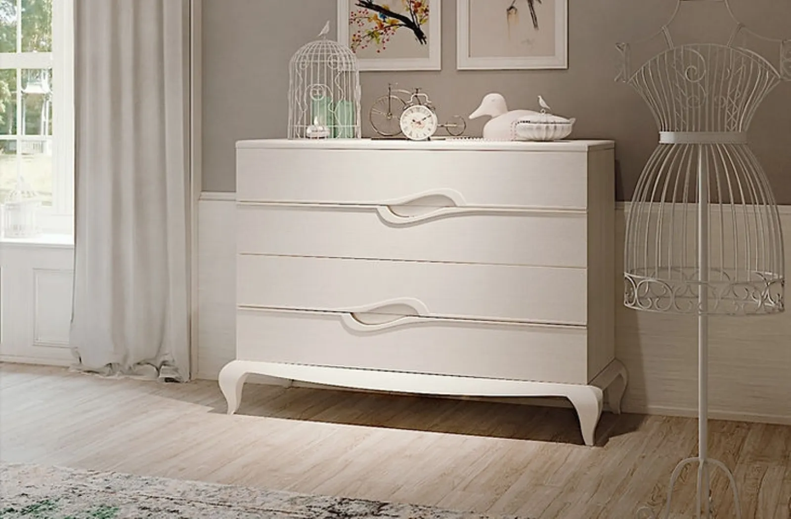 I Comodini sono arredi fondamentali in ogni camera, difatti consentono di ultimare gli spazi valorizzando ogni angolo. Comò Mon Amour di Fasolin: è un mobile contenitivo poliedrico e capace di garantirti praticità e grande valore estetico in una camera dai richiami classici. Le proposte in legno dell'azienda, leader nella produzione di armadi e comò, consentono di ricreare accostamenti ad hoc oppure avere caratteristiche in netto e voluto contrasto con i restanti pezzi di arredo.
