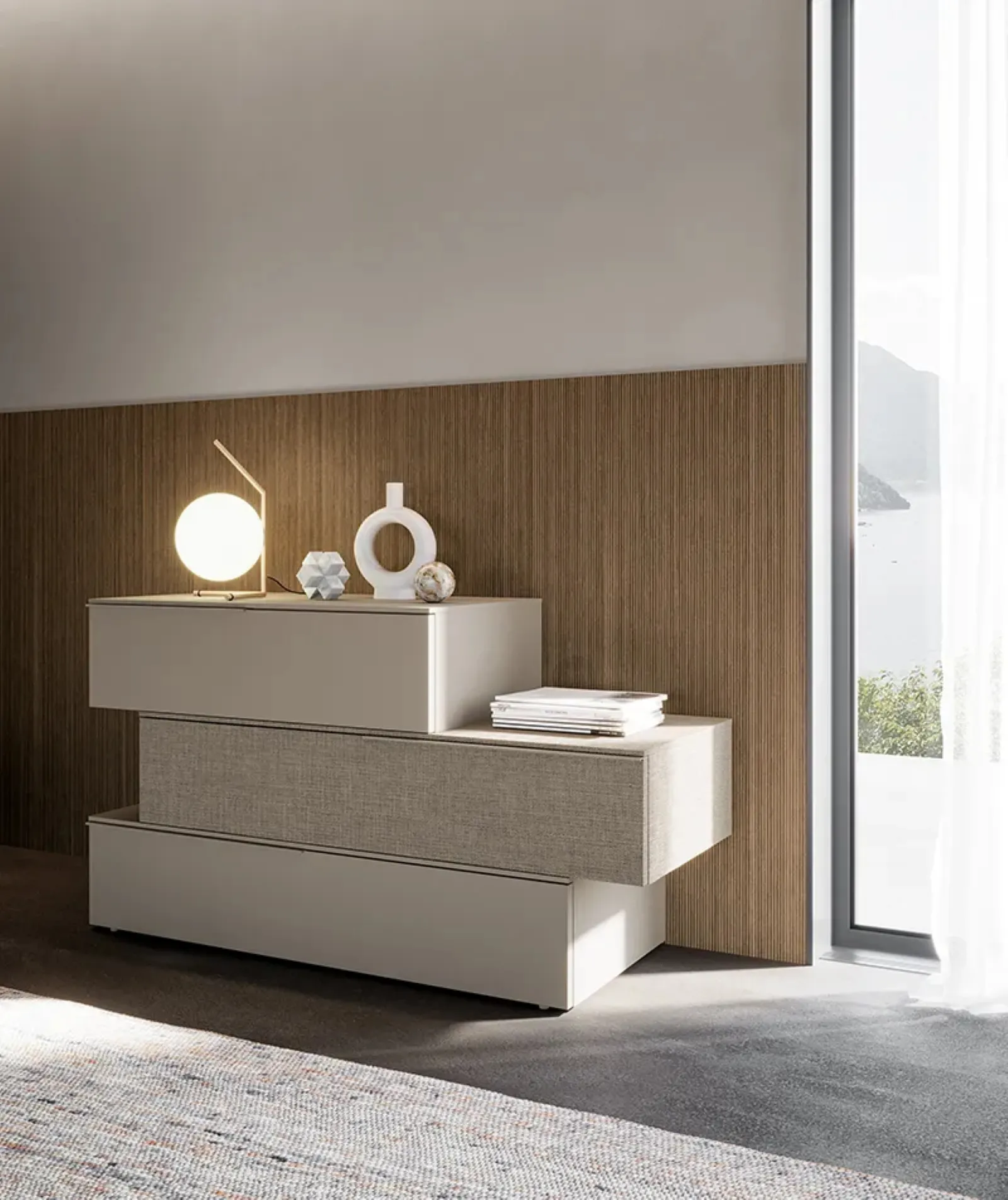 I Comodini sono arredi imprescindibili in ogni camera da letto, per questo danno la possibilità di ultimare gli spazi ottimizzando ogni angolo. Le tipologie in melaminico del marchio, specialista nella realizzazione di armadi e comodini, permettono di creare accostamenti di gusto differente oppure avere caratteristiche in netto e voluto contrasto con i restanti pezzi di arredo. Comò Aria di Adok: è un contenitore poliedrico e capace di assicurarti funzionalità e un'ottima estetica in una camera dai richiami design.
