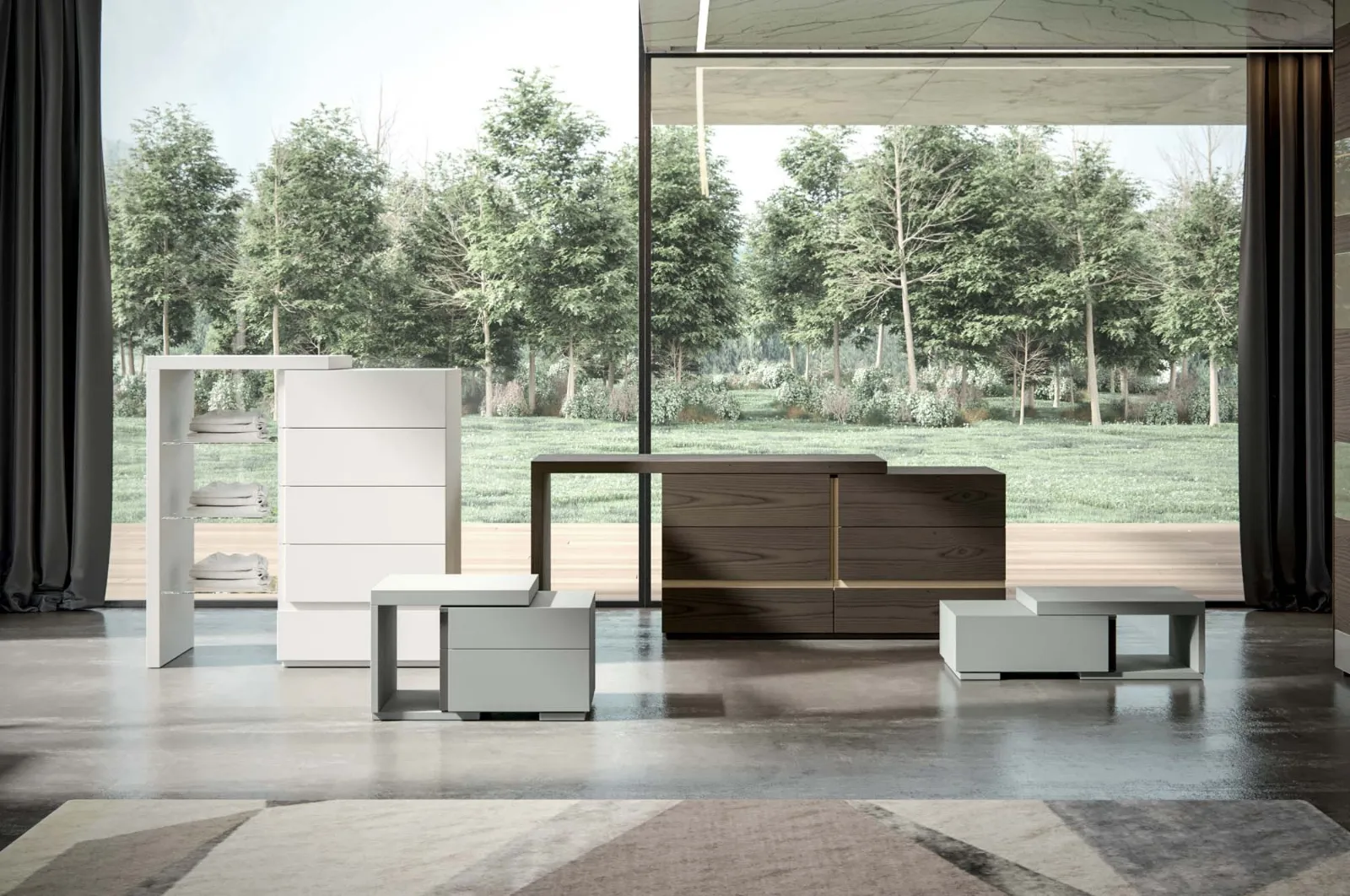 Lasciati ispirare dal design moderno dei Gruppi Notte Veneran. Scopri il modello Flos laccato opaco, perfetto per aggiungere un tocco di stile all'arredamento della tua casa. Specialmente con i comodini.