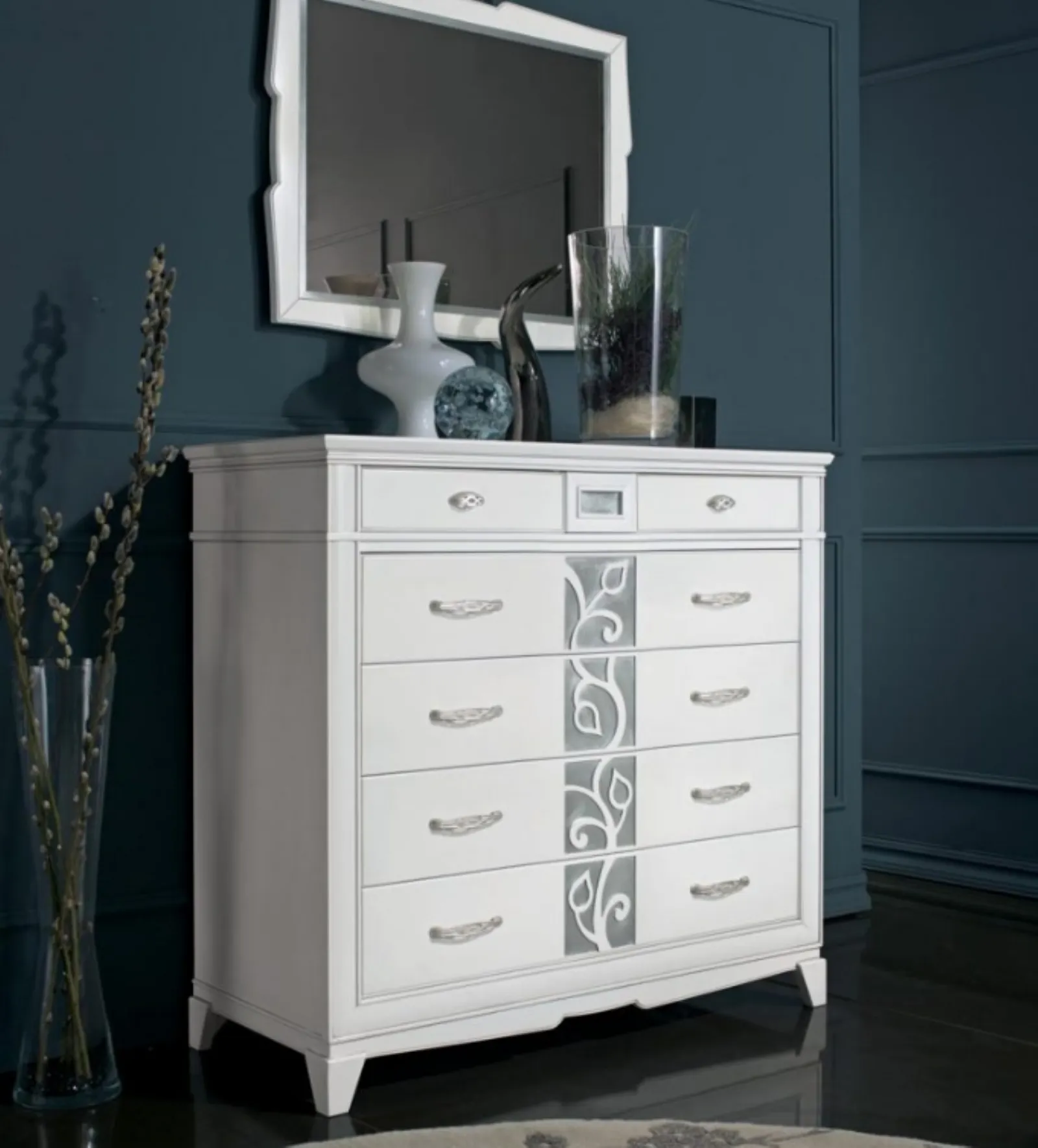 Scopri un'ampia gamma di Comodini moderni della firma Padovani Mobili, leader nella realizzazione di mobili e oggetti accessori per la zona notte. Valorizza i tuoi spazi assicurandoti grande funzionalità, spazio contenitivo e uno stile unico. I Comodini, comò e settimini possono essere abbinati al letto e all'armadio o possono essere in netto e voluto contrasto con essi: sono preferiti considerando le vere possibilità di spazio e cercando di creare un armonioso concept d’arredo. Comò Giorgia art 3166 in laccato Bianco di Padovani Mobili è un contenitore di legno che assicura un'ottima funzionalità e uno stile unico, che si abbina perfettamente all'arredamento della zona notte. Vantaggi: