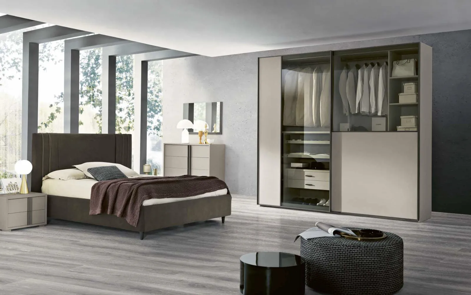 Ottimizza la tua camera da letto con Gierre Mobili: il modello Gruppo Notte Dakar è progettato per arredamento casa e comodini moderni.